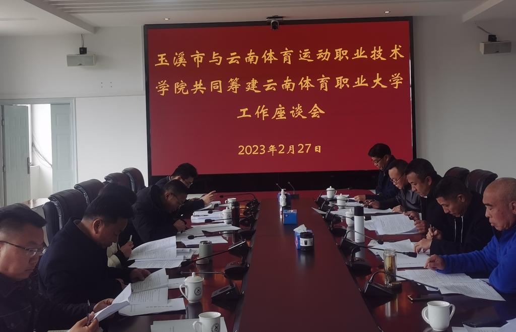2023年2月27日下午14:30,玉溪市相关部门领导到万象城官网就共同筹建云南体育职业大学工作展开座谈,校长代红兵率校领导及工作专班同志参加。