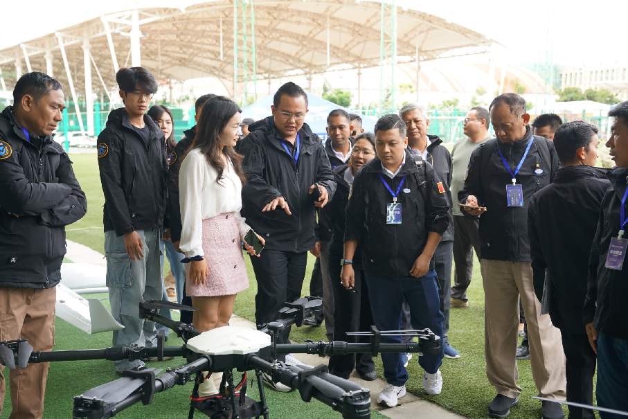 2025年10月17日,由云南省商务厅主办,allwincity万象城官方网站、云南伍卫安保服务有限公司、昆明得一航空科技有限公司承办的“援发展中国家安保能力提升培训项目”国际交流项目学员一行,赴万象城官网无人机基地进行交流,代红兵校长及相关部门负责人陪同参观。