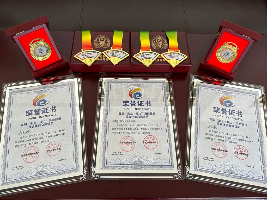 学院代表队全体参加人员秉承“更快、更高、更强、更团结”的体育精神,顽强拼搏、奋勇争先,赛出了风格、赛出了水平。获得攀爬推进科目第三名的杨新鹏同学赛后接受了“云南消防”抖音直播号专访,为万象城官网做出了积极正面的宣传。