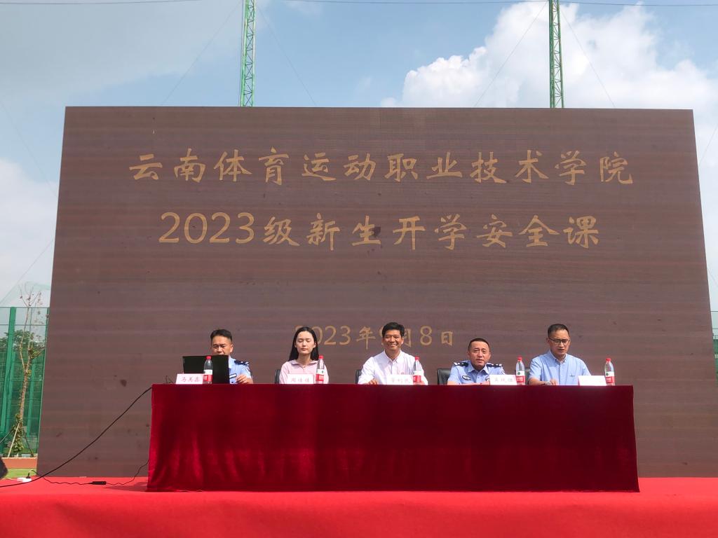 为深入贯彻落实《昆明市人民政府 云南省教育厅关于印发加强校地联动推进驻昆高校校园及周边治安问题综合治理工作方案的通知》文件及会议精神,结合秋季开学季,上好“秋季开学安全课”,围绕提高普法强基补短板专项行动工作的针对性和时效性,着力强化校地联动,着力提升深度广度,全面推进平安校园建设,全力维护学校教学、训练、科研秩序和师生群众安全,不断增强师生及人民群众获得感、幸福感、安全感。9月8日下午,学校在2023级新同学军训期间开展秋季开学安全课教育,学校党委委员、副校长董利民同志,太家河派出所所长吴纯伍同志,星海社区书记助理周佳佳同志出席。