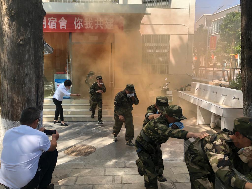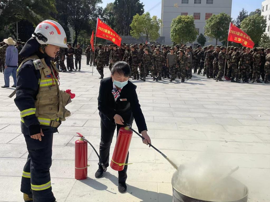 为进一步贯彻落实消防法,提升广大师生员工消防“四个能力”建设,普及消防安全知识,增强自防自救能力,9月15日下午,在2023级新生军事技能训练期间,学校开展消防安全应急疏散演练及灭火实操,相关部门干部职工、2023级新生、物业公司全体人员约1000人参加演练,昆明市度假区消防救援大队到校指导。
