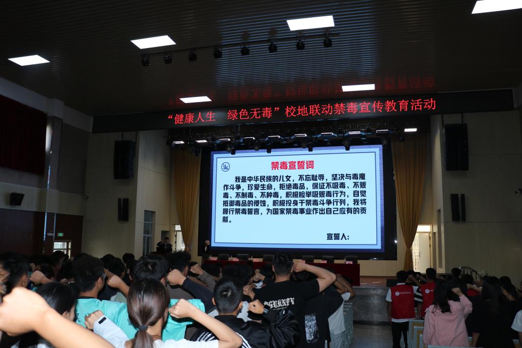 潘紫东警官以“健康人生、绿色无毒”为主题,针对当前禁毒新态势,科学阐释毒品概念,介绍了传统毒品和新型毒品的种类、毒品的危害、毒品侵害典型案例、禁毒相关法律法规,深刻揭示毒品危害性、伪装性和迷惑性,广泛传播毒品预防知识和防毒技能,为同学们带来了一场精彩的讲座。讲座中,参加活动师生在潘紫东警官带领下现场禁毒宣誓,喊出了“我是中华民族的儿女,不忘耻辱,坚决与毒魔作斗争,珍爱生命,拒绝毒品,保证不吸毒、不贩毒、不制毒、不种毒,积极检举吸贩毒行为,自觉抵御毒品的侵蚀,积极投身于禁毒斗争行列,我将履行禁毒誓言,为国家禁毒事业作出自己应有的贡献。”的铮铮誓言。讲座后,同学们参观戒毒所带来的各类展品,对毒品有了更直观的认识。