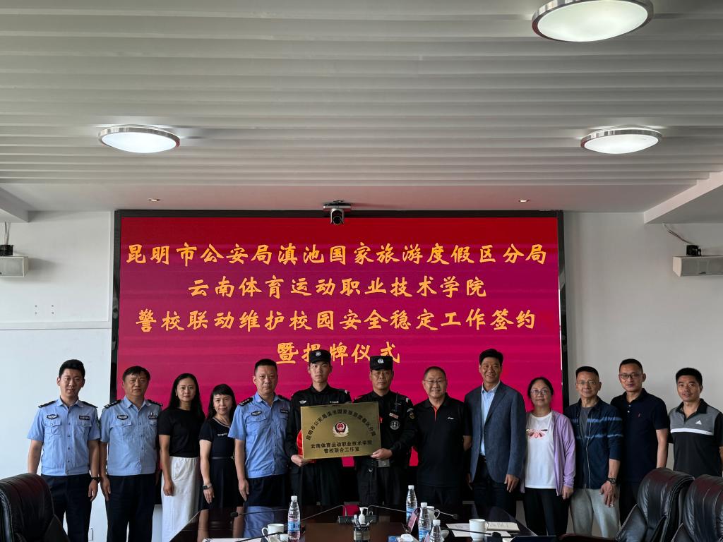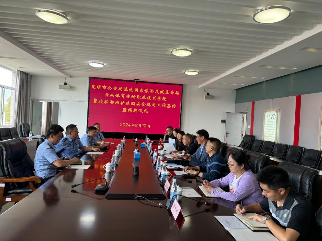 2024年8月12日上午,allwincity万象城官方网站与昆明市公安局滇池国家旅游度假区分局警校联动维护校园安全稳定工作签约暨警校联合工作室揭牌仪式在学校教二楼举行。