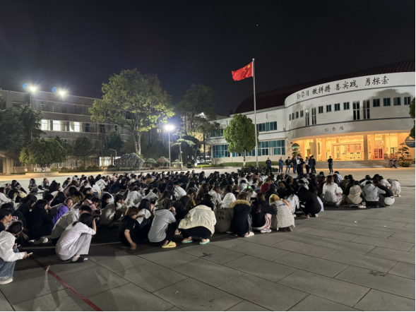 按照“实战性”的要求,开展了白天场和夜间场的演练培训。第一次警报声响起,全校学生在宿舍内做“震时避险”,第二次警报声响起,专业教员、宿管人员、安保人员迅速按照疏散路线带领学生进行有序撤离,学生猫腰俯身、持隔离物或双手护住头颈,快速、有序地从宿舍撤离到学校广场、小田径场等空旷地带,辅导员及时清点人数并做出报告。