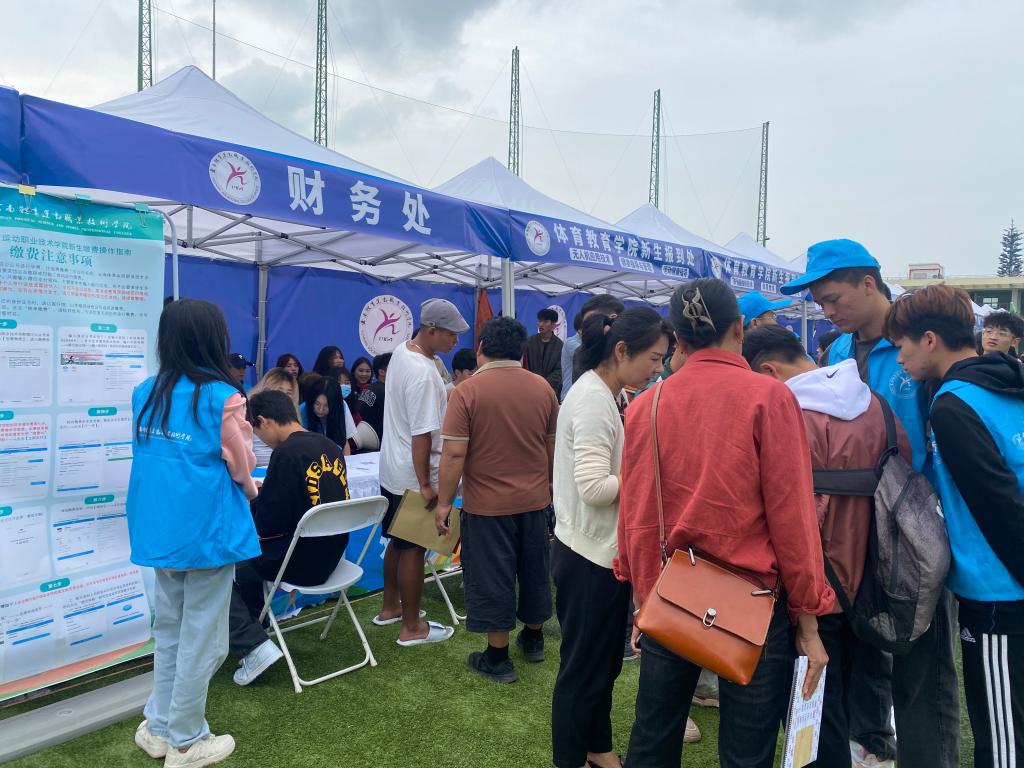 8月30日上午,财务处工作人员提前到达报到现场,对志愿者进行岗前培训,并与志愿者一起指导新生进行线上缴费,规范有序地开展缴费业务。