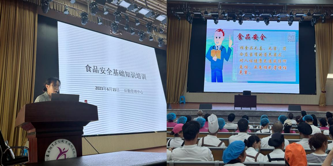 为进一步提高校园食品从业人员业务水平,增强其食品安全风险防范意识,2023年6月15日下午,后勤管理中心在学生礼堂开展了食品安全卫生知识培训,对校园餐饮从业人员进行了食品安全知识培训。参加培训的有后勤管理中心赵志明副主任、医务所高俪娟医生、后勤管理中心食堂分管小组的老师以及学生一、二、三食堂、大学生创新创业中心、商超小卖部等食品制备从业人员、管理人员等80余人。