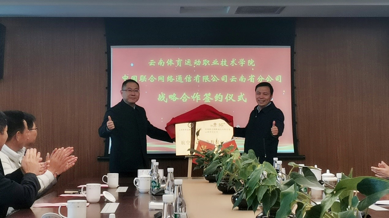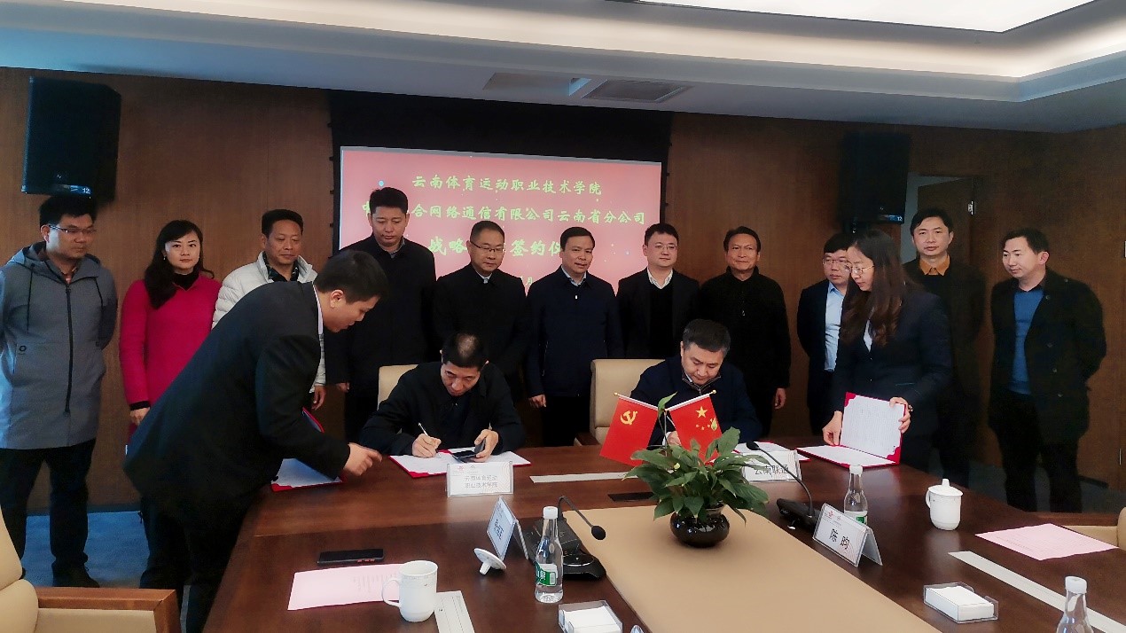 云南联通总经理伍昭祥代表企业进行致辞,中国联通作为数字技术融合创新的排头兵,在信息化内涵建设、技术实力方面有着优势,在落实云南打造世界一流“三张牌”、“数字云南”和体育强省战略中,校企要积极探索和落地在数字校园建设、产业联盟、大健康产业学院、数据中心、人才培养、科研成果转化等各方面的项目,切实提升体育职业教育为社会、行业、企业服务的功能,为企业培养更多高素质体育技术技能型人才,同时也为学生实习、实训、就业提供更多机会和更大空间。
