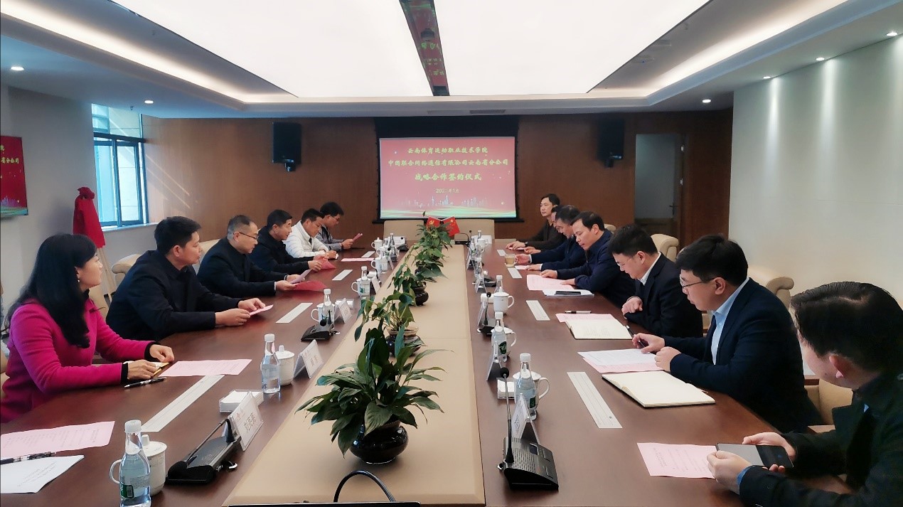 2022年1月11日allwincity万象城官方网站与云南联通战略合作签约仪式,在云南联通新大楼8楼会议室隆重举行。学校党委书记缪军、党委副书记、院长代红兵、副院长聂真新、办公室(党委巡察办)以及科研管理中心主要负责人代表万象城官网,出席了签约仪式。云南联通总经理伍昭祥携常务副总经理温涛、政企客户事业部主要负责人出席了签约仪式。