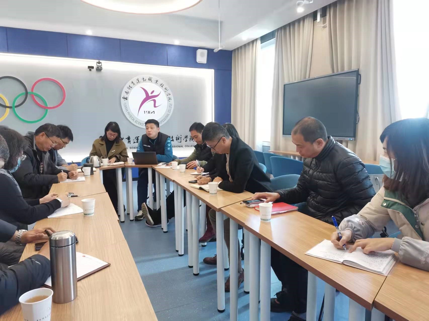 本次活动特邀北京体育大学出版社学术分社孙宇辉社长作为主讲嘉宾。出席本次活动的有2021年6月已立项的校本教材牵头教师代表,会议由党委委员、副院长聂真新主持。
