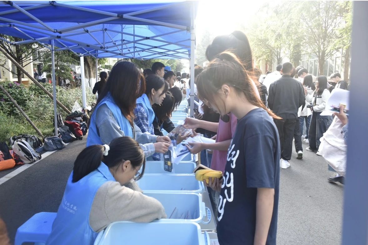 引导组的志愿者们如同校园的指南针,热情地为考生指引方向,确保他们顺利进入考场。秩序维护组的志愿者们则穿梭在考场周围,及时制止大声喧哗的行为,为考生们维护安静舒适的考试环境。咨询台的志愿者们热情解答考生的各项疑问。物品保管组的志愿者们则细心地为考生的手机和随身物品贴上标签,确保它们在考试期间得到妥善保管。