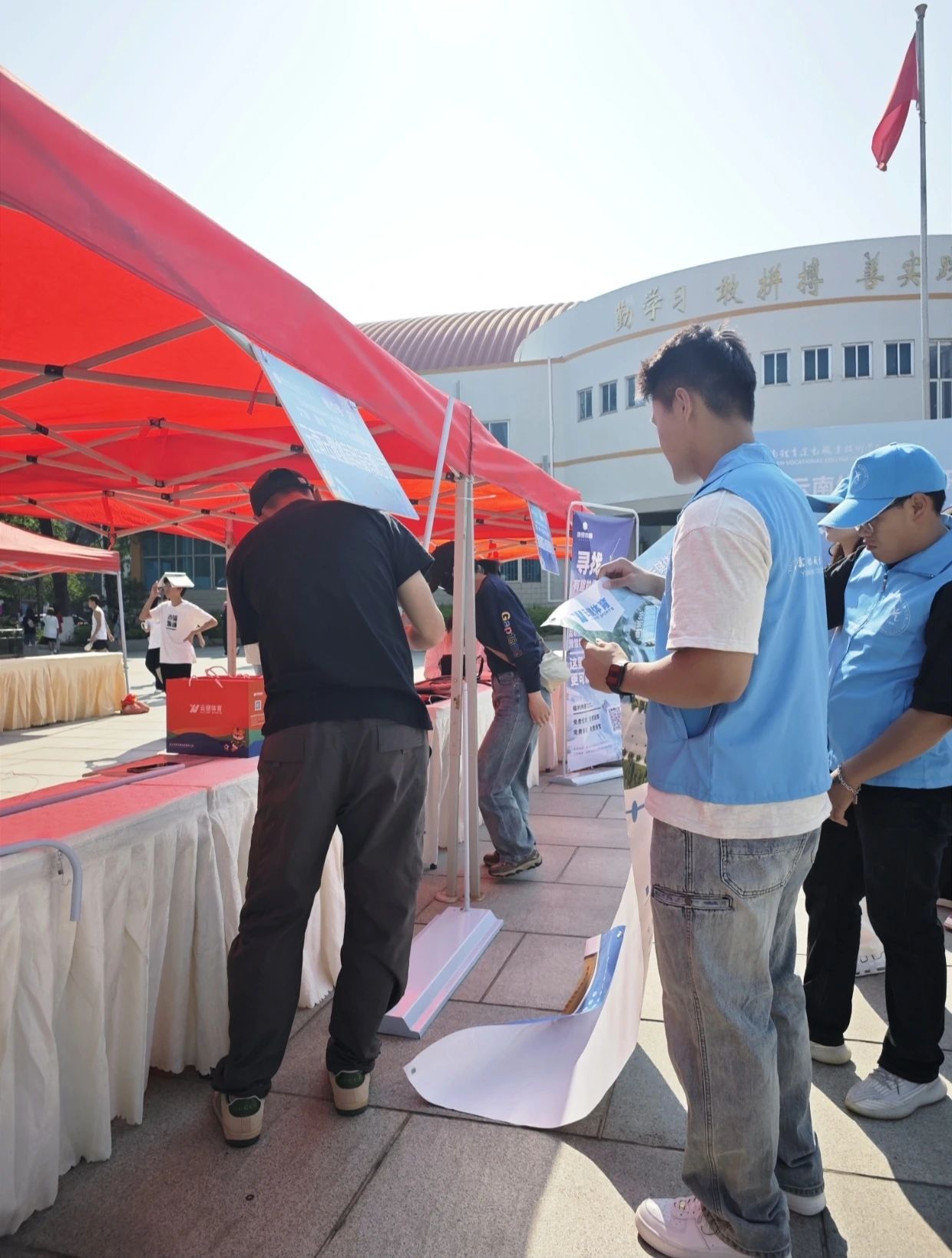 招聘会当天,志愿者们早早地来到了现场,开始了忙碌而有序的工作。他们分工明确,各司其职。
