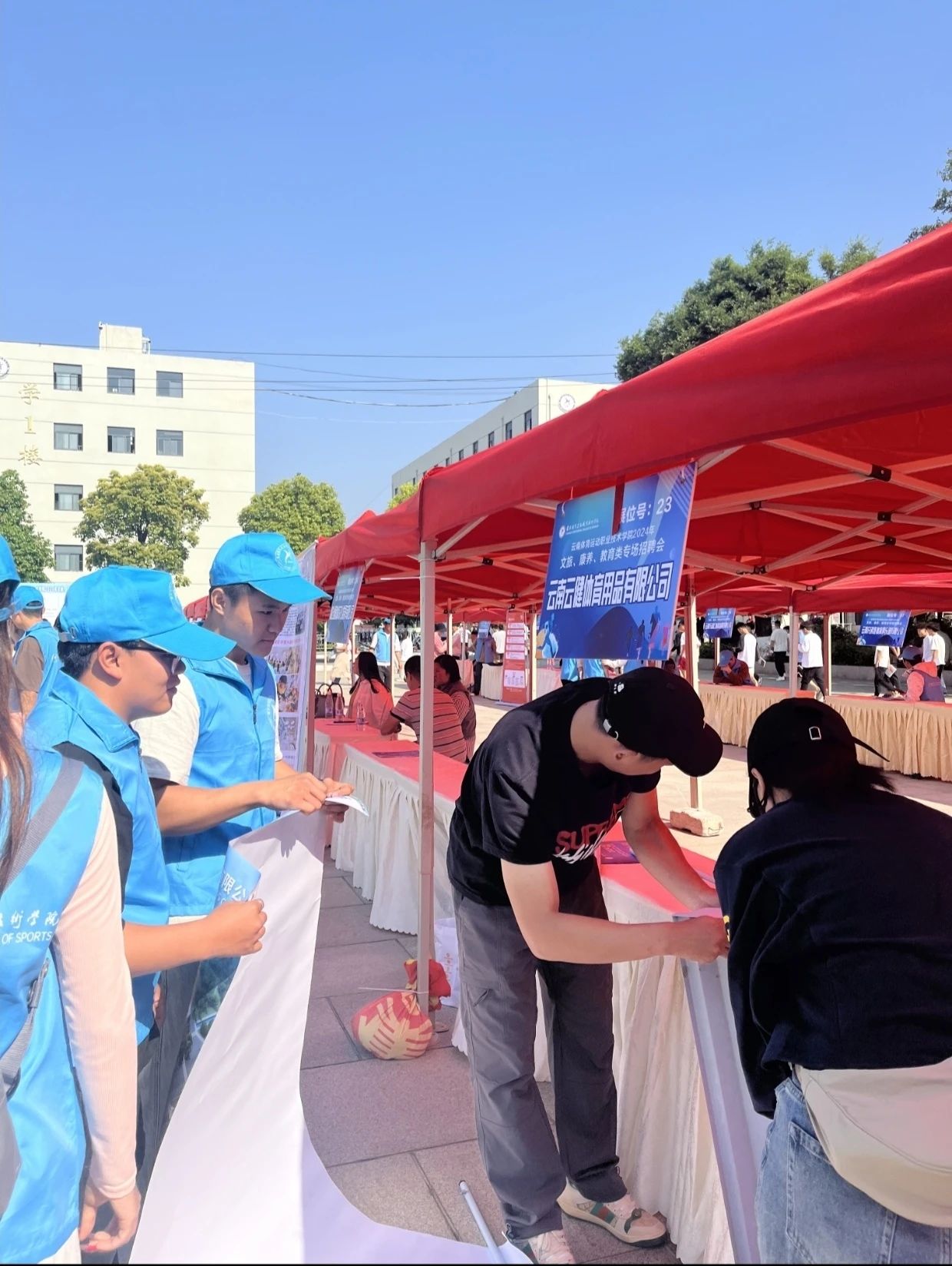 2024年4月26日上午,allwincity万象城官方网站举办2024年文旅、康养、教育类专场招聘会。为充分做好接待各参会公司的到来以及招聘会的顺利召开,体职院青年志愿者协会在学校团委、招生就业处的指导下,精心组织并招募了50名青年志愿者,参与本次招聘会的志愿服务。