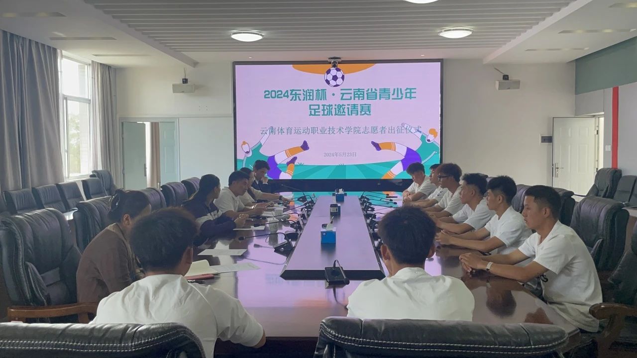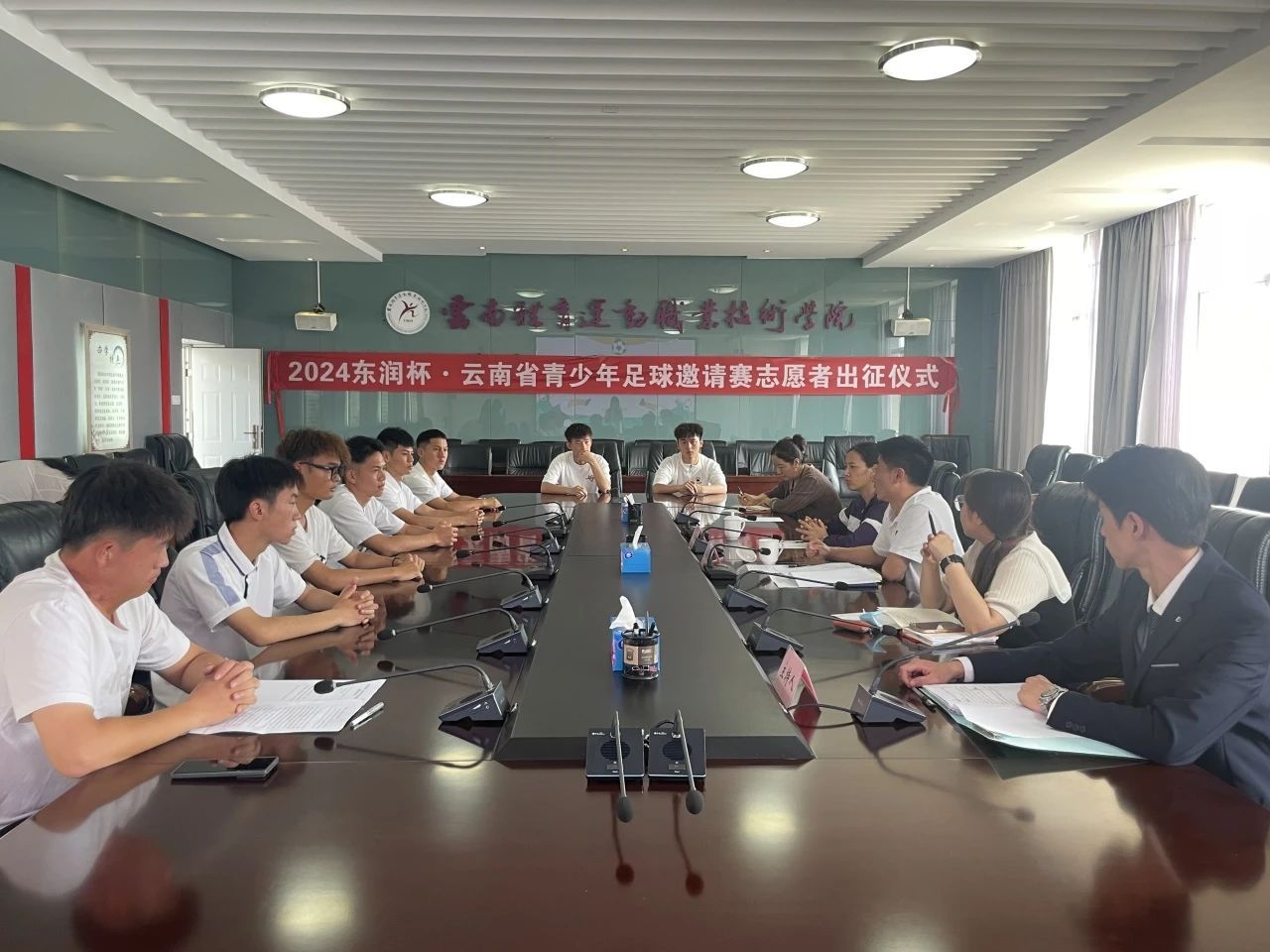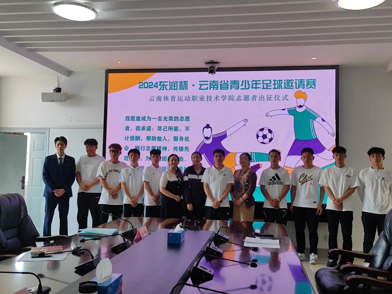 2024年5月23日在万象城官网云帆楼第一会议室举行了“2024东润杯·云南省青少年足球邀请赛支教志愿者出征仪式”。万象城官网团委书记陈明照、云南省青少年发展基金会希望小学建设部主管肖宇娟、万象城官网足球支教培训教师和校团委老师们出席了此次活动。为即将前往丽江、宣威、开远、禄丰市8所中小学进行60天的支教志愿服务的8位志愿者同学做出征前的动员、培训以及送行。