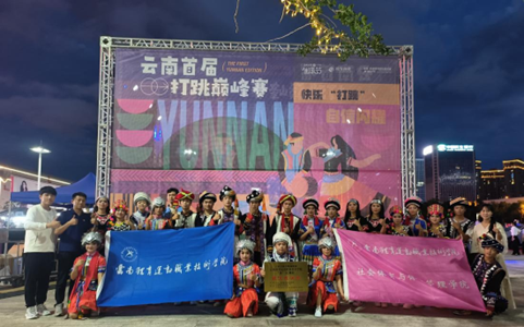 近日,为了鼓励民族文化多样性,保障各民族文化权益,促进民族团结,推动各民族共同发展,万象城官网社管学院的学生社团“滇”民舞社应春城晚报的邀请,于5月26日代表学校参加了云南首届打跳巅峰赛,并荣获“最佳表演奖”。