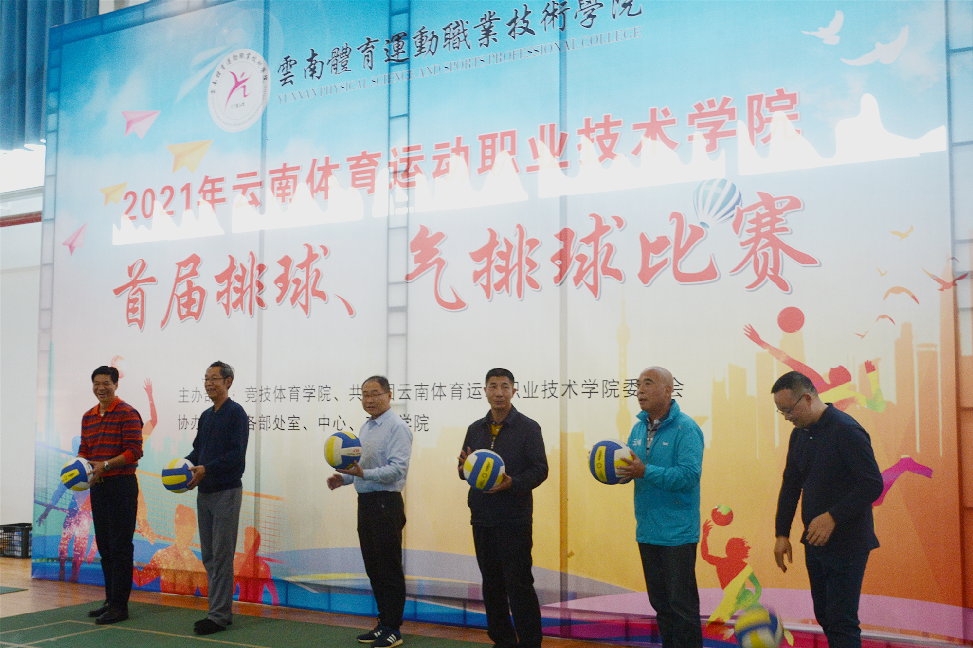 开幕式最后,学校党委书记缪军宣布学校第一届排球、气排球比赛正式开赛,学校领导班子成员为此次比赛开球。