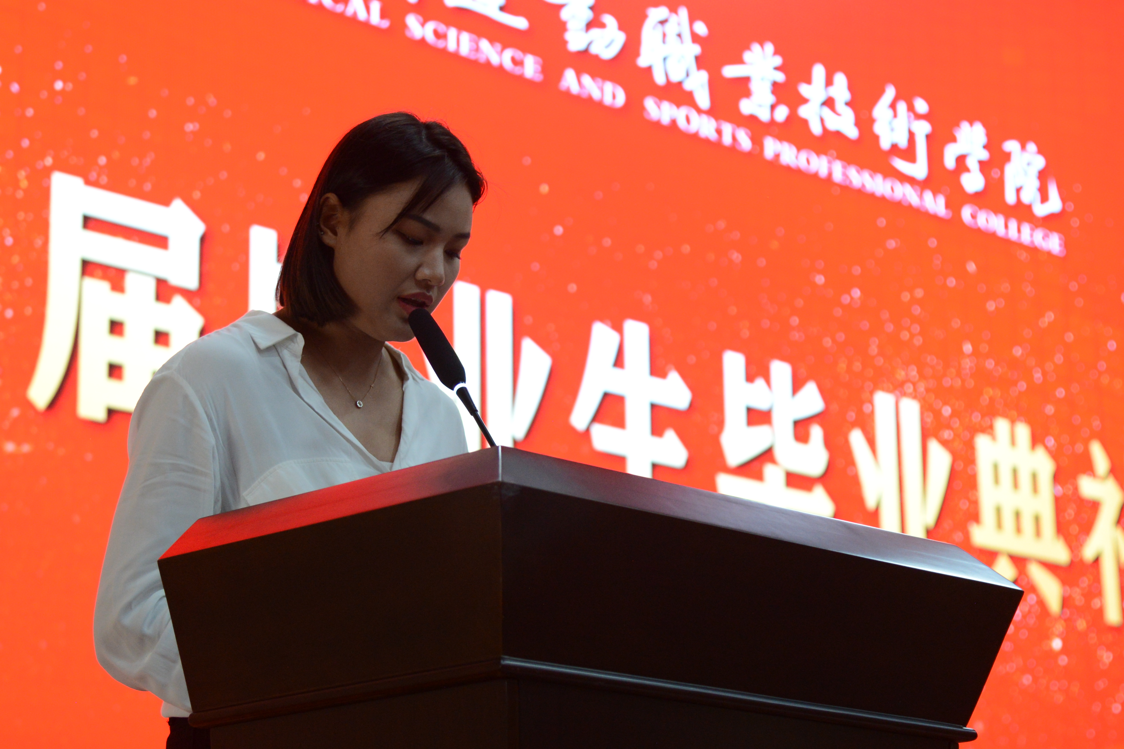 运动训练与教练员学院学生张峪佳代表学生发言。她向学校和老师三年来的辛勤培育表示了衷心的感谢,她表示,在新的旅途中,体职院学子会用实际行动让allwincity万象城官方网站的名字更加响亮。