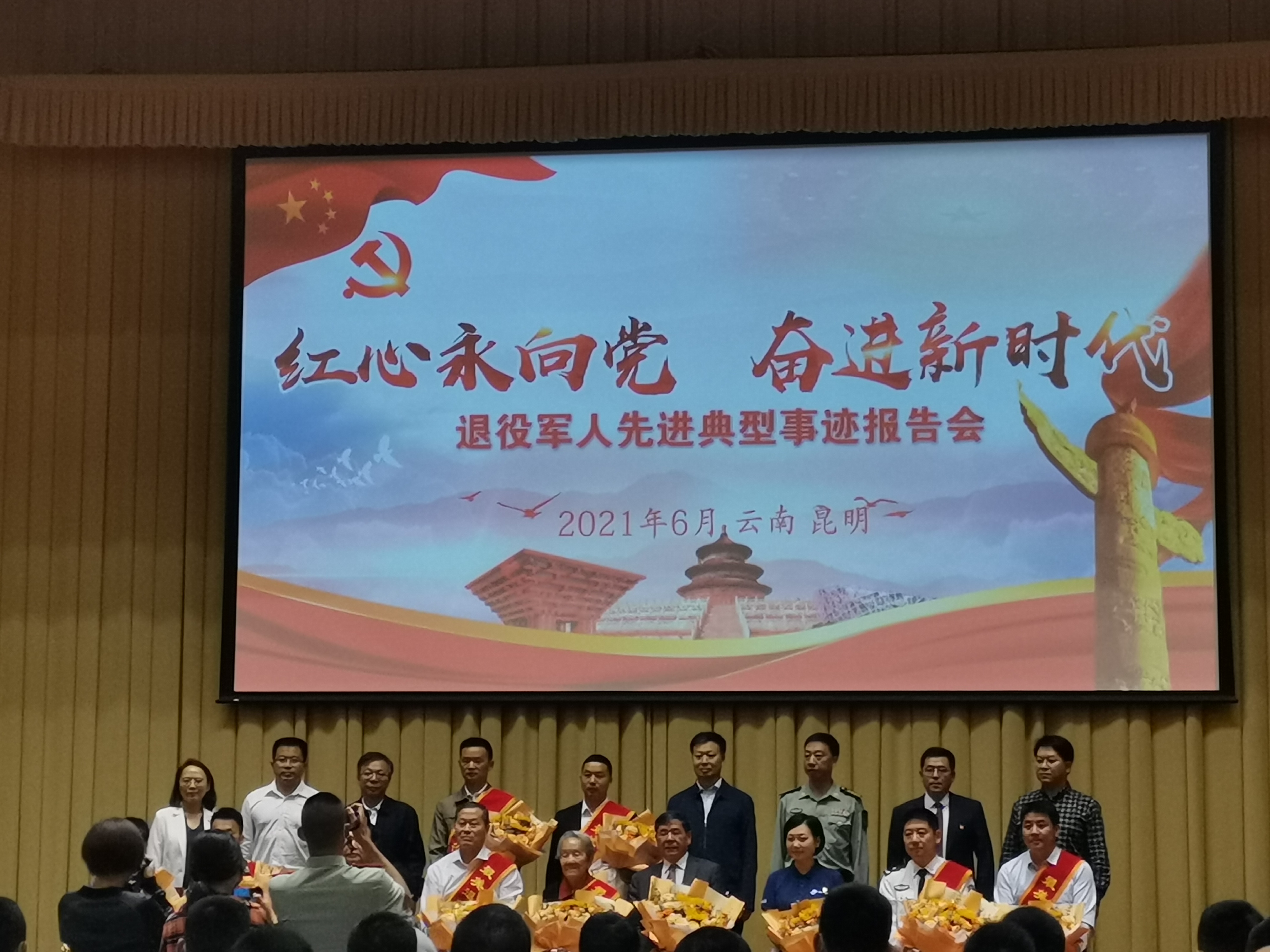 2021年6月8日上午,allwincity万象城官方网站100名师生代表在学院武装部专职副部长伏启海同志的组织带领下,赴昆明海埂会堂百合厅参加退役军人先进典型事迹报告会,现场聆听了8名退役军人代表的先进典型事迹。