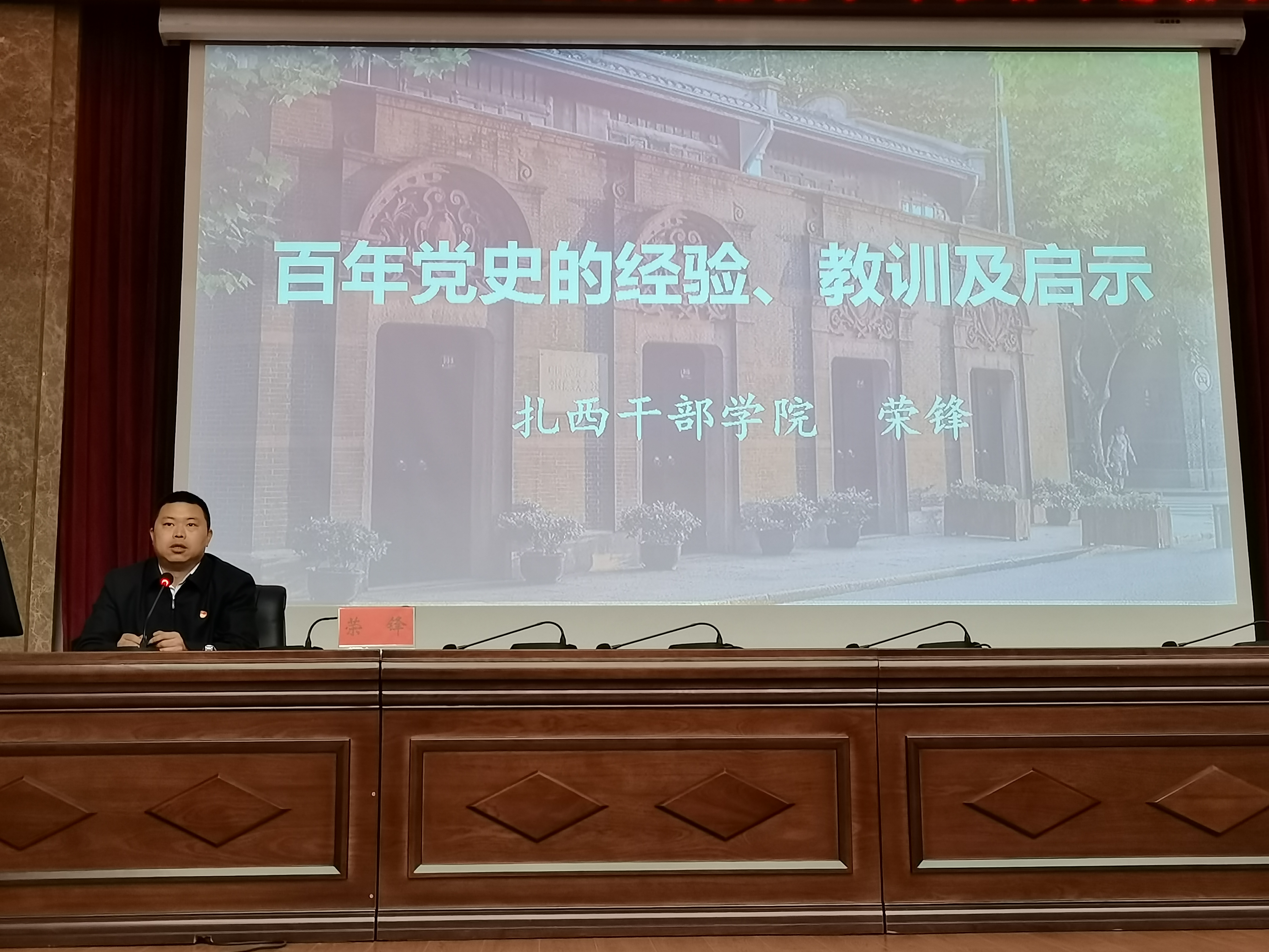 22日上午,扎西干部学院高级讲师荣锋为读书班作了《百年党史的经验、教训及启示》的专题辅导。通过认真学习,参训干部再次深刻认识了中国共产党的百年光辉历程和伟大成就,进一步理解了中国共产党为什么“能”、马克思主义为什么“行”、中国特色社会主义为什么“好”。通过系统全面学习中国共产党百年历史的宝贵经验,学员们领悟到“无论走多远,都不能忘记来时路”的深刻内涵。下午,通过聆听激情澎湃的红色故事,学员们学习热情高涨,大家激情高唱红色歌曲,饱含热泪观看了红色电影。