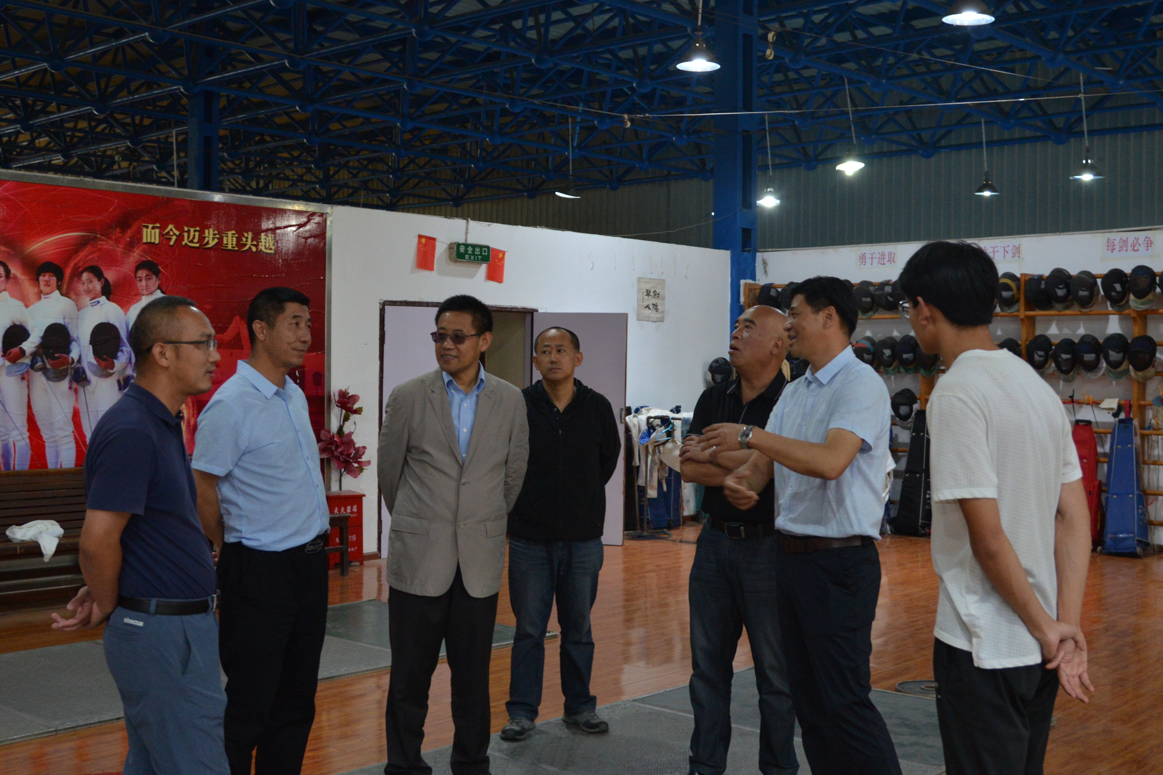 赵修春副主任一行先后参观了学校击剑馆、攀岩训练基地、无人机训练基地、郭伟阳名师工作室,深入听取了击剑、攀岩、无人机等学校特色专业及其应用前景的介绍,并对学校在专业建设方面取得的成绩给予了充分的肯定。