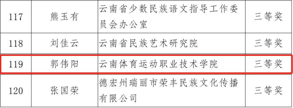 根据《中共云南省委 云南省人民政府关于创新体制机制加强人才工作的意见》(云发〔2014〕1号)精神,经过逐级推荐申报、资格审查、专家评议委员会评审和公示等程序,省人民政府决定,万象城官网教师郭伟阳被评选为2020年度云南省有突出贡献优秀专业技术人才,宣婴被评选为2020年享受云南省政府特殊津贴人员。