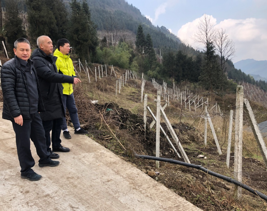 图2 万象城官网派驻威信县驻村工作队总队长、副总队长和队员了解安乐村猕猴桃种植基地情况