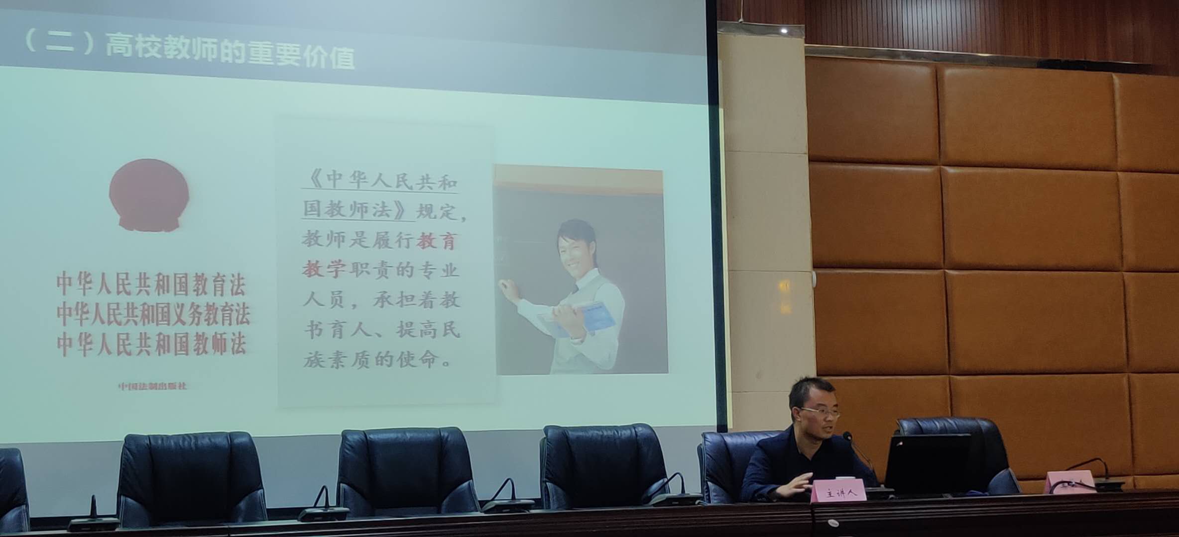 在课程的设置上,主要安排了思想政治理论、入职心理调试、师德师风、教学能力、班主任、辅导员五门培训课程。培训第一天,来自云南民族大学的吕朝辉副教授为新老师们开展了题为“习近平关于高校教师素质要求与责任担当的重要论述”的讲座,从高校教师的重要价值、素质与责任担当三个方面切入,为大家上了一堂生动的思政课。