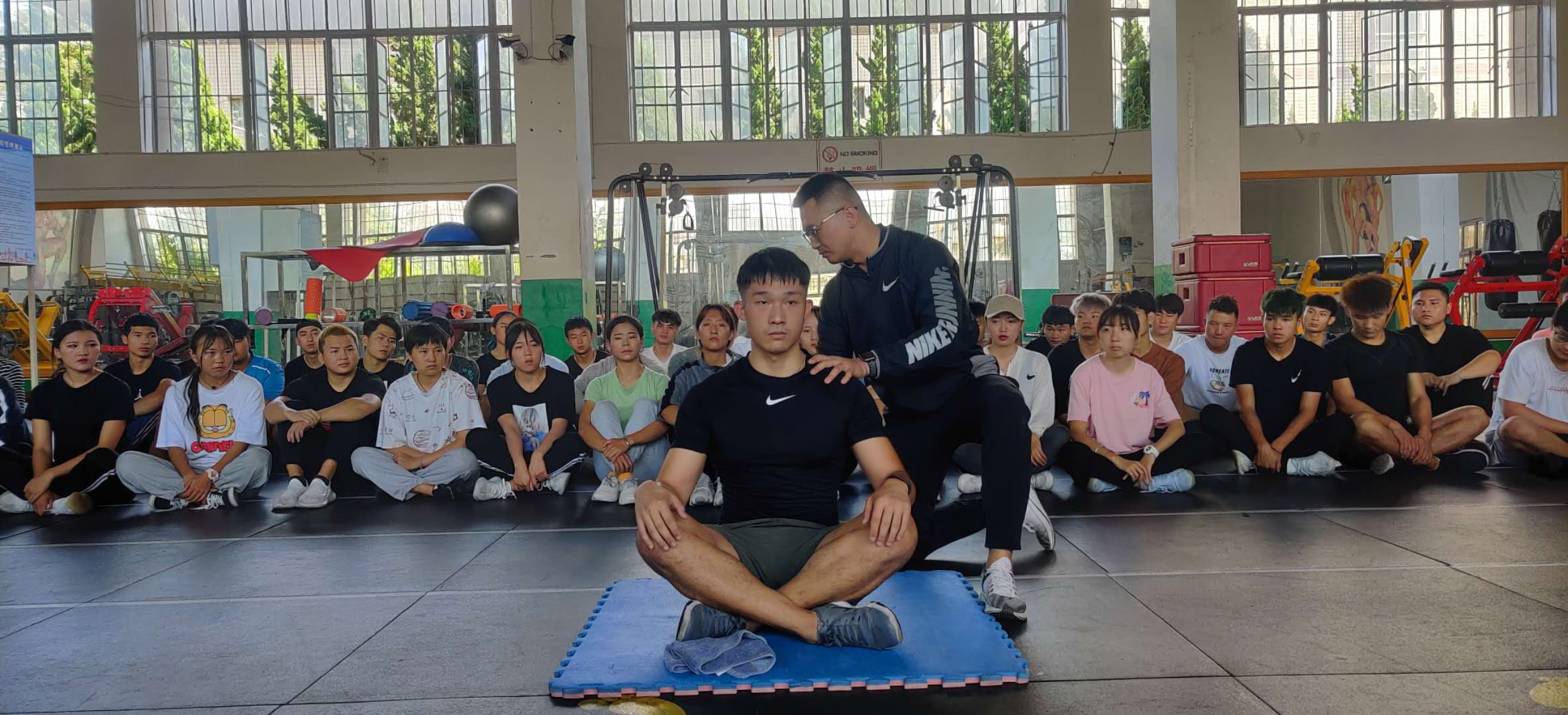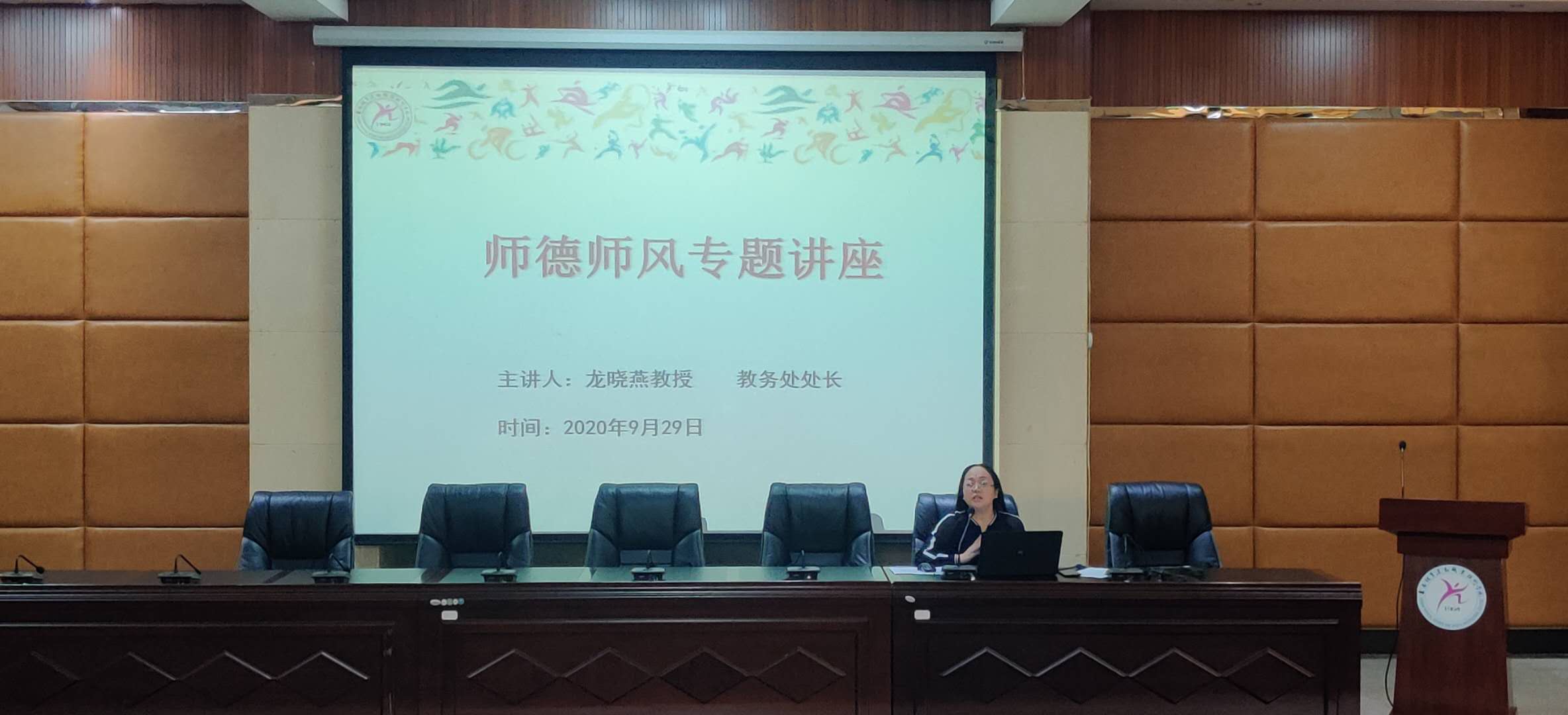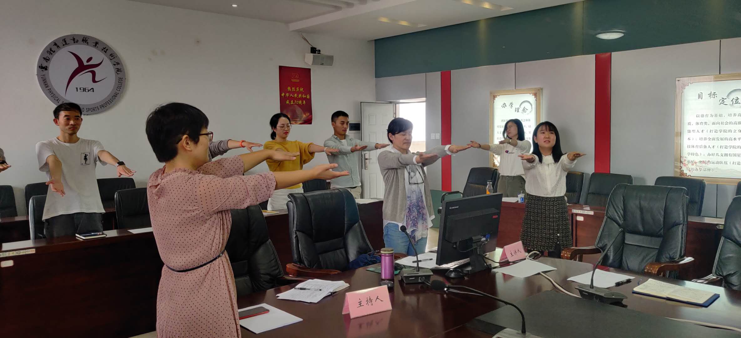 培训第二天,学校教务处龙晓燕处长为给各位老师进行了一场师德师风的专题讲座,她首先介绍了学校相关的师德师风管理办法,然后对何为师德师风给大家进行了细致的解读。招就处副处长张立国老师则将传统课堂和现代授课方法相结合,为新入职老师上了一堂精彩的生涯规划基本理论课。在特色课程方面,学院还为新入职老师安排了体能训练课程和武术套路课程的旁听,通过特色课程的展示,让新入职老师更深入的了解了学校专业课程的设置以及课堂教学的方法。