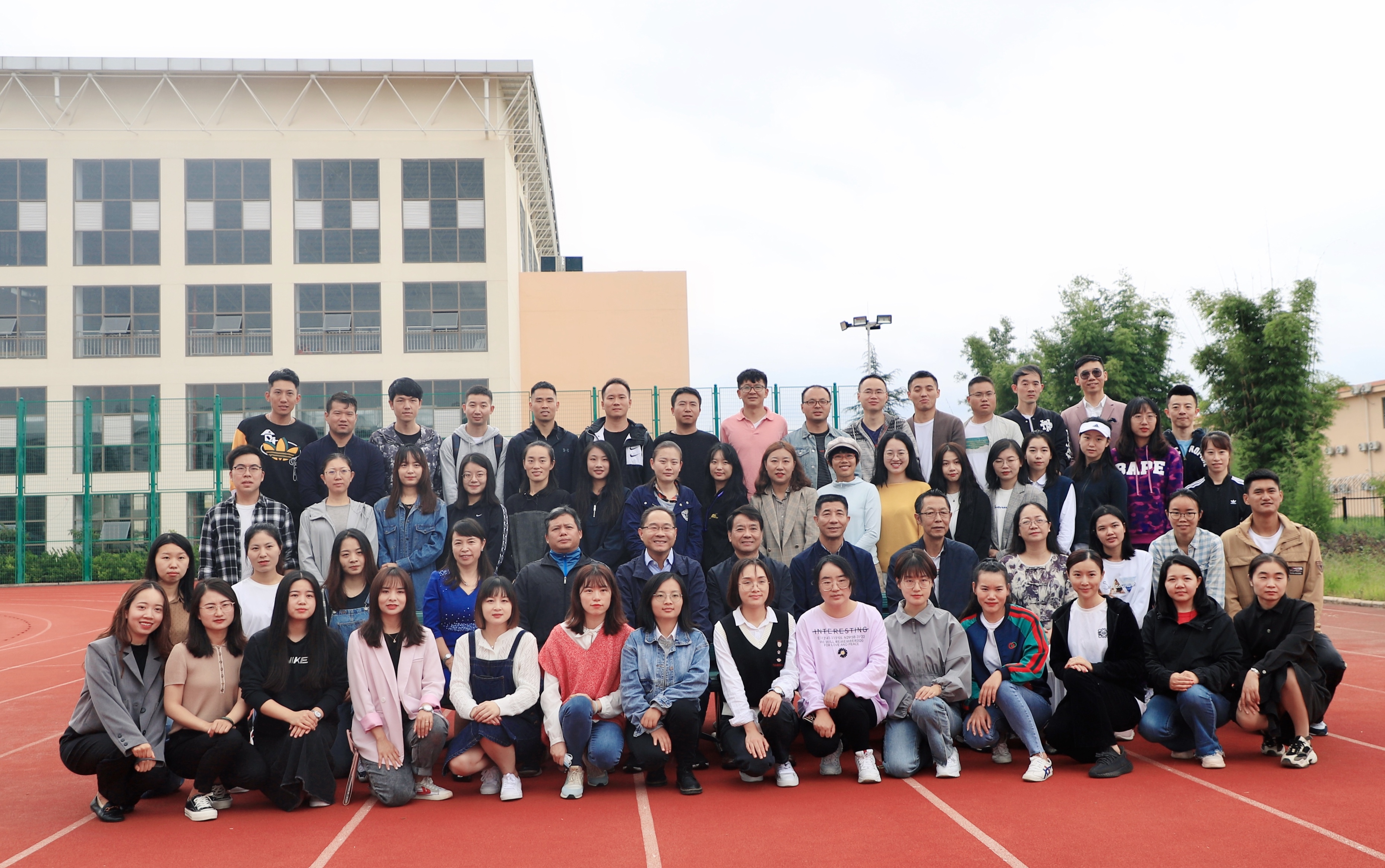 开班仪式结束后,学院主要领导与新入职老师在运动场进行了合影留念。