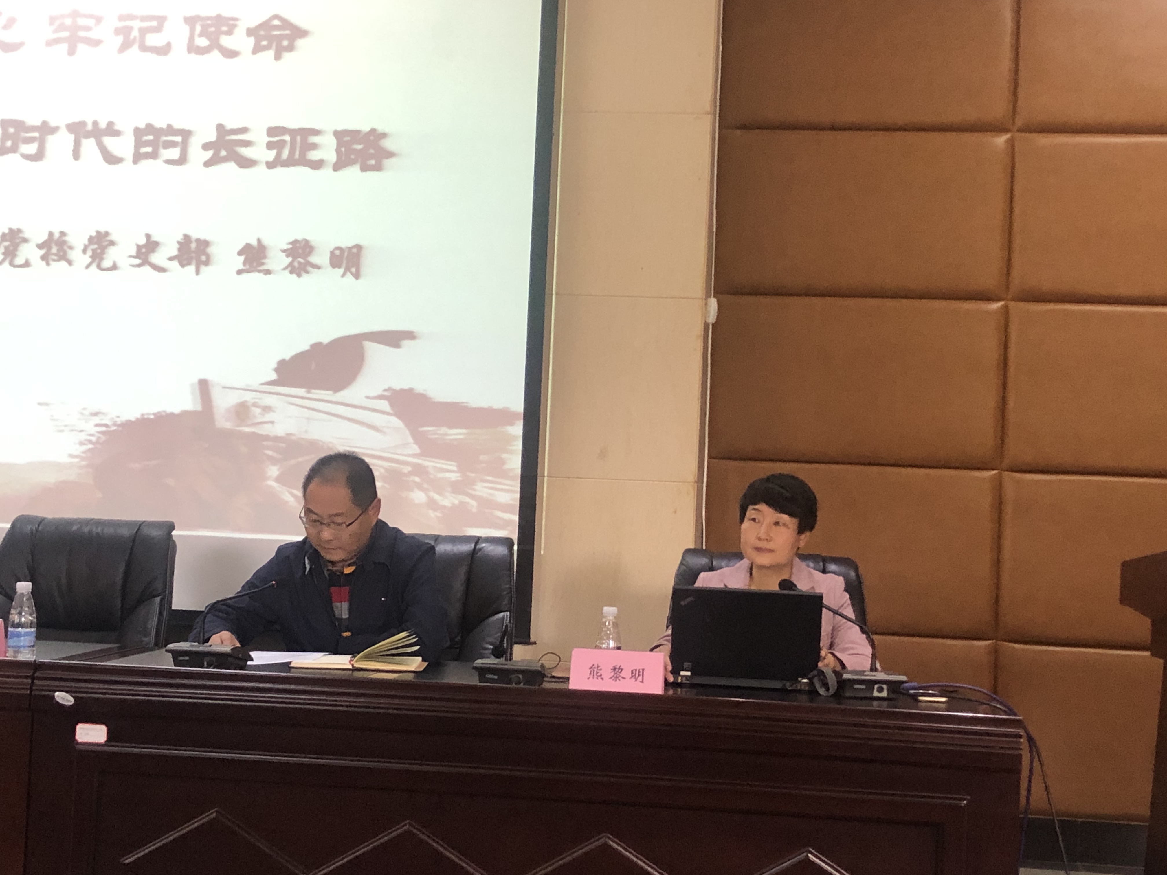 熊黎明教授首先围绕“不忘初心、牢记使命”主题带领师生重温红军长征伟大壮举。结合相关的史料和事例,对长征的历史背景、重要事件及长征史的热点问题、如何弘扬伟大长征精神等方面进行详细讲解,深入分析了长征对中国共产党和中国革命乃至人类文明进步的重要意义。