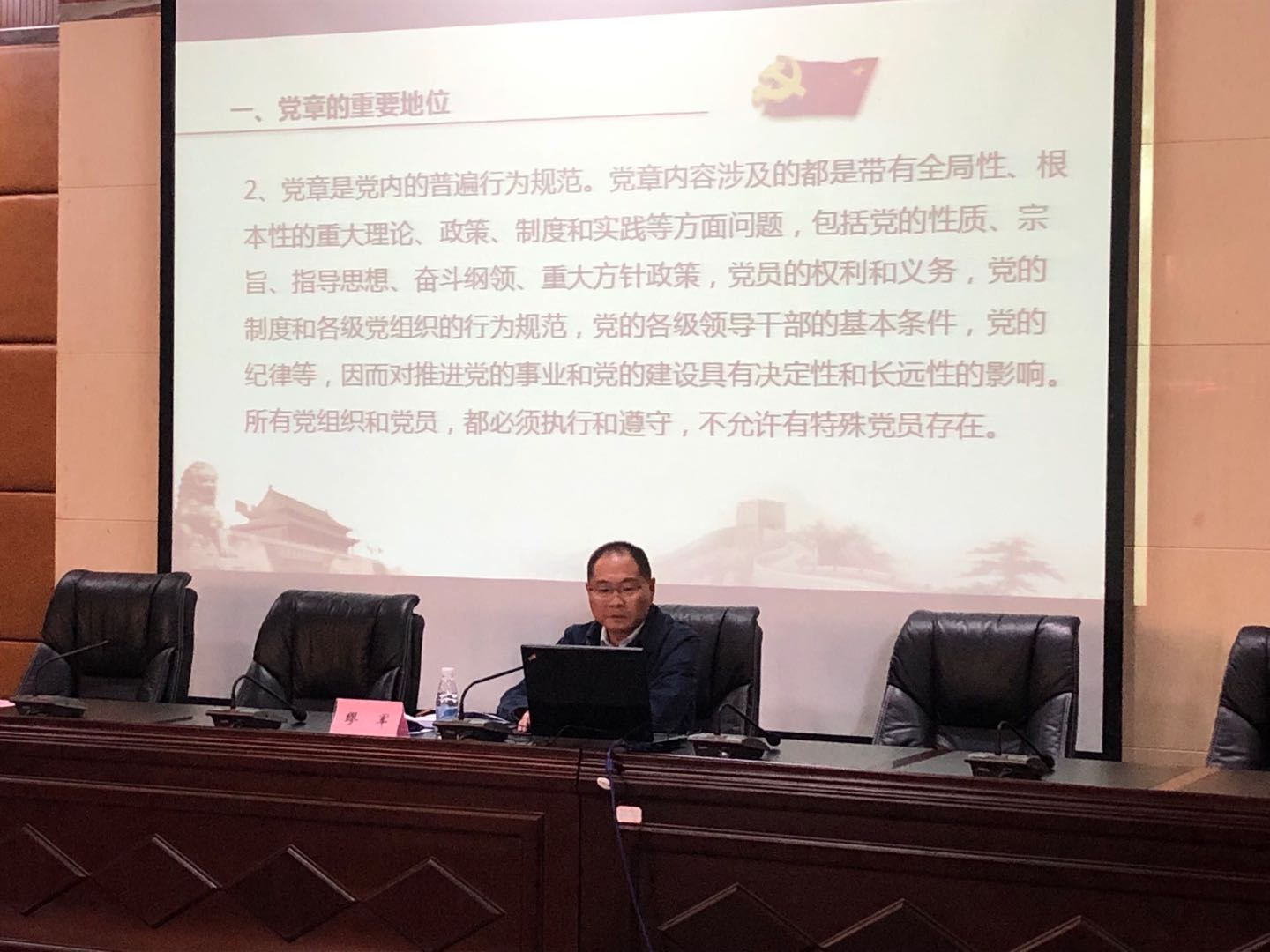 开班仪式结束后,党委副书记、纪委书记缪军同志以“认真学习党章,牢固树立党章意识”为主题,围绕“党章是总章程、总规矩、总遵循”、“十九大党章的基本内容”、“做新时代合格的共产党员”三个方面进行深入细致的解读。