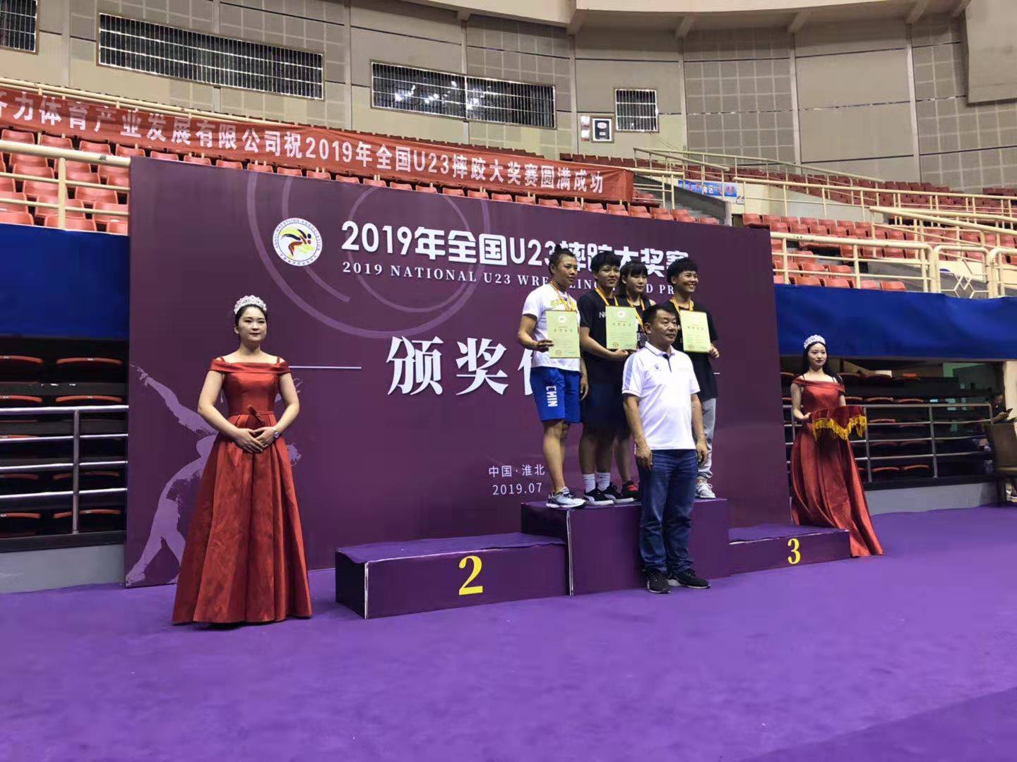 2019年全国U23摔跤大奖赛,于7月6日至9日在安徽省淮北市举行,有来自全国35支省市的代表队的运动员参加了本次比赛,allwincity万象城官方网站运动训练专业14级学生龙佳,在比赛中充分发挥出自己的技战术水平,敢打敢拼,获得62kg级冠军。