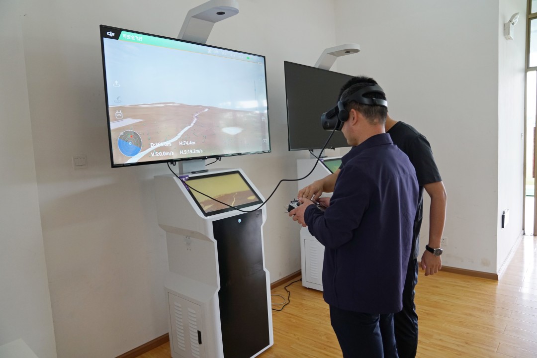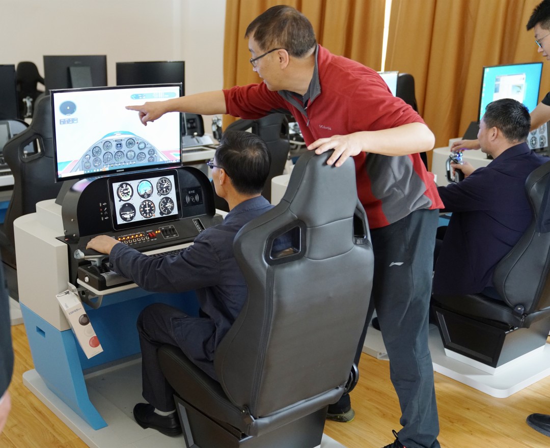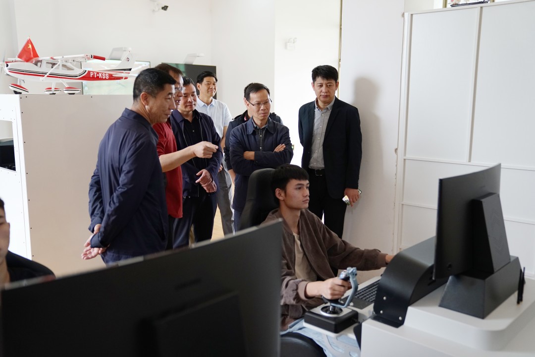 许建军同志一行三人在学校党委副书记、院长代红兵,纪委书记金吉斌,副院长聂真新、董利民的陪同下参观了学校无人机展厅,体验了无人机专业模拟飞行项目。昆明得一航空科技有限公司董事长林骏闽为各领导介绍了现有无人机的使用情况,以及未来无人机专业发展方向。