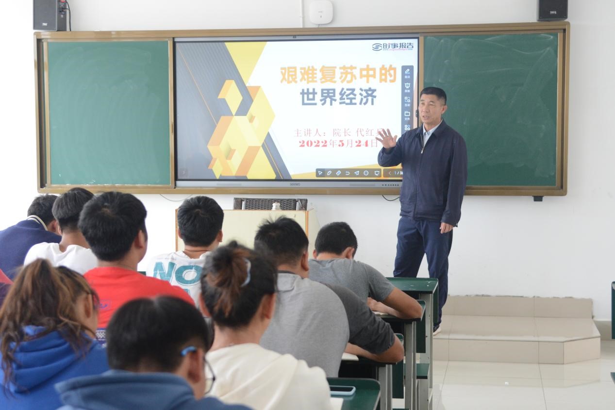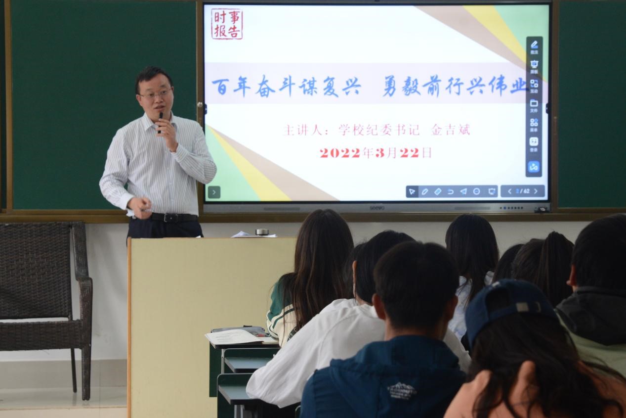 学校思政部根据教学进度,安排校领导与思政课专职教师共同承担《形势与政策》课程的授课任务,校领导主动与授课教师沟通研讨,精心准备授课内容,在讲课中展现出坚定理想信念、深厚学术功底、宽阔理论视野,用鲜活生动事例、富有亲和力的语言、并结合学生专业特点讲授思政课,深受广大学生喜爱,也为思政课教育教学起到了良好的示范作用。