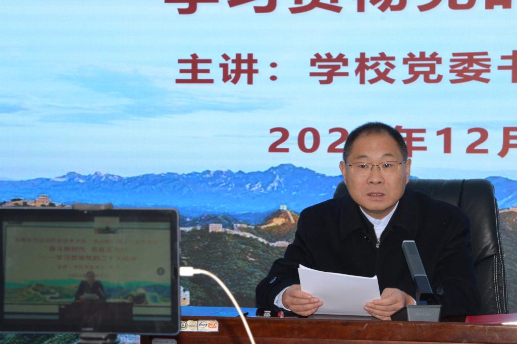缪军指出,党的二十大是在全党全国各族人民迈上全面建设社会主义现代化国家新征程、向第二个百年奋斗目标进军的关键时刻召开的一次十分重要的大会,是一次高举旗帜、凝聚力量、团结奋进的大会。广大同学要充分认识党的二十大重大意义,做到“九个深刻领会”,原原本本、逐字逐句学习党的二十大精神。