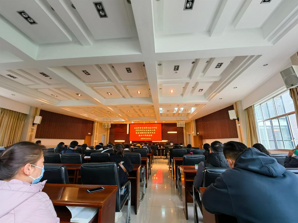 会上,招生就业处汇报了就业创业工作方案,专升本工作,毕业生参军入伍,线上线下招聘服务,落实访企拓岗任务,就业能力提升训练营,“互联网+”创新创业大赛等2022年就业工作情况,并从高位统筹,形成工作合力,开展有温度有力度的指导帮扶,灵活“请进来”,积极“走出去”五方面总结了本年度工作经验。