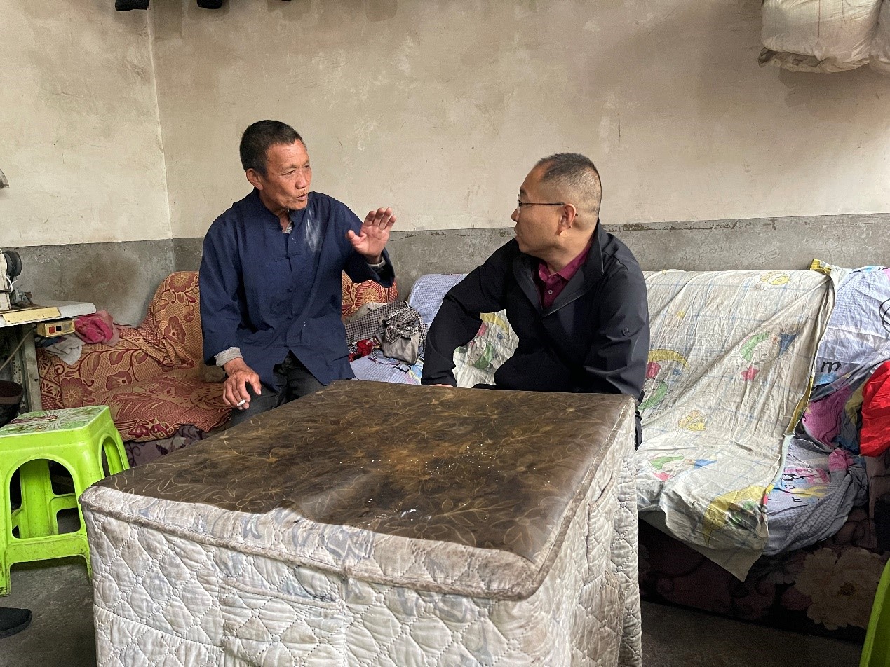 5月25日下午,调研组一行来到扎西镇观音社区,看望、慰问了独居老人饶成莲和脱贫户王礼兴,与他们亲切交谈,关心询问他们的身体状况和生产生活状况,倾听他们的心声,并向他们送上慰问品。调研组在观音社区木沟村民小组,实地考察了木沟村民小组的产业发展、基础设施建设等情况,并在活动场所与村民们座谈。村民们自发地来到活动场所,对调研组一行的到来表示欢迎,并向学校赠送锦旗,感谢学校为木沟村安装路灯。