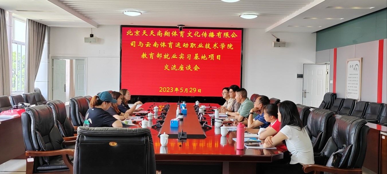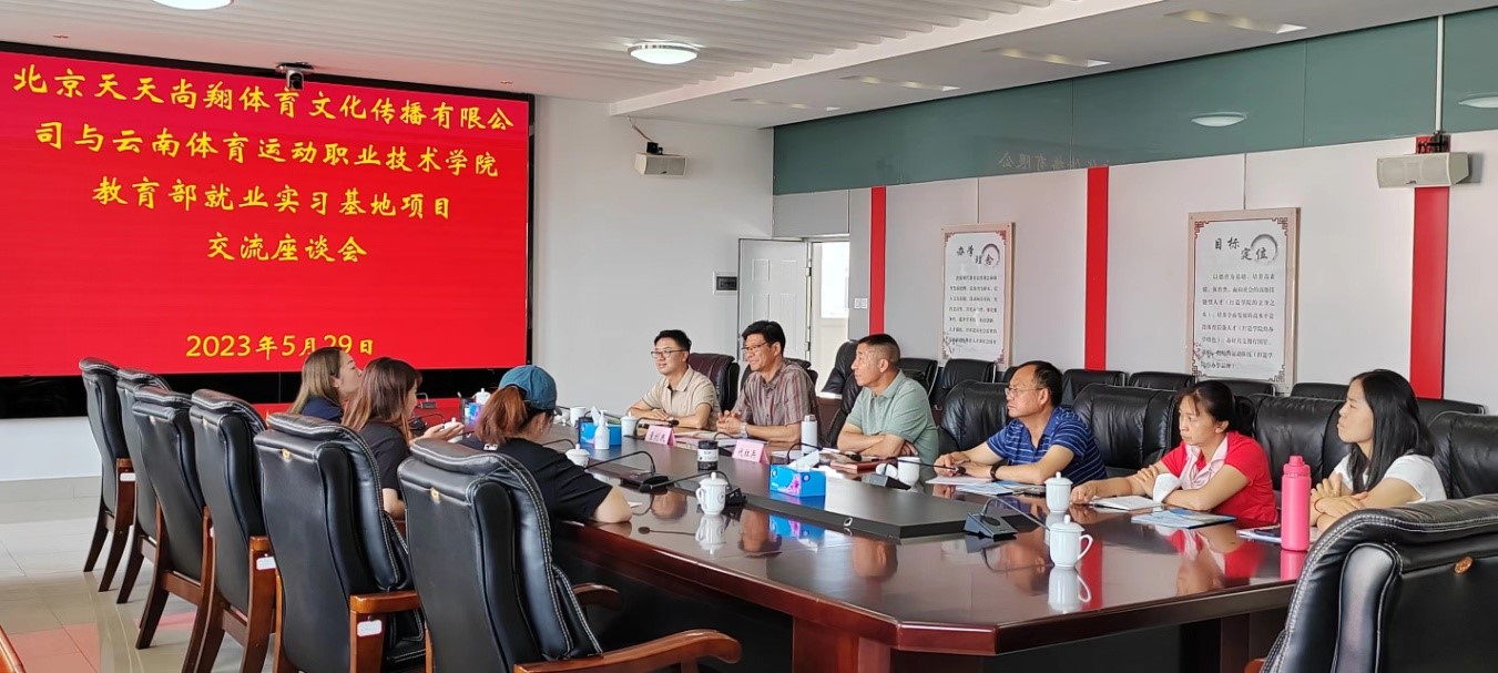 为落实党中央国务院“稳就业”“促就业”决策部署,深化产教融合与校企合作,推动人才培养与就业有机联动,5月29日上午,万象城官网在第一会议室与北京天天尚翔体育文化传播有限公司就教育部就业实习基地项目开展交流座谈。党委副书记、院长代红兵,副院长董利民,北京天天尚翔体育文化传播有限公司代表出席会议。招生就业处、体育教育学院主要负责同志,项目小组成员参加会议。