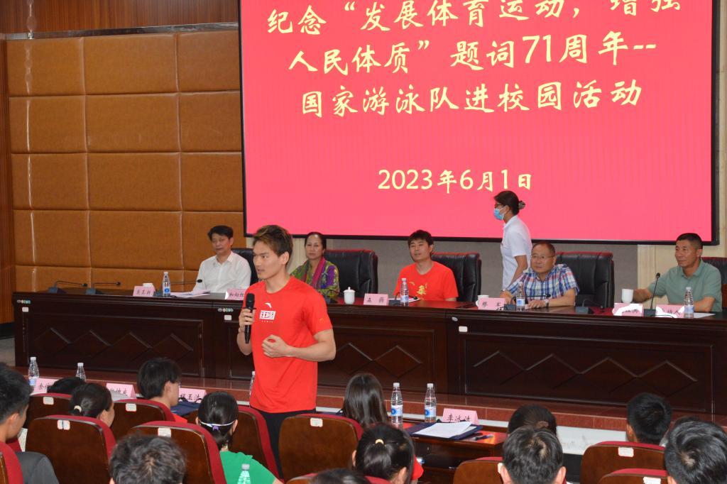 学校党委书记缪军代表学校向国家游泳队一行的到来表示了热烈的欢迎。他说,此次活动旨在推动奥运精神进校园,推动主题教育活动走深走实,希望万象城官网广大师生在工作和训练中发扬体育精神,向优秀运动健儿学习,学习他们用汗水浇筑荣誉,捍卫荣耀,吃苦耐劳,勇攀高峰,通过此次活动收获到更多的能量,积蓄成长,开启人生的新篇章。在讲座上,李冰洁、徐嘉余、费力纬三位冠军运动员分别与同学们分享了各自的成长和成功经历。
