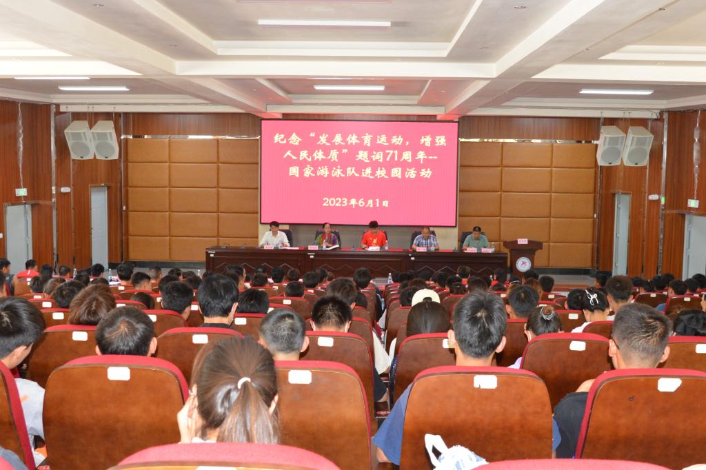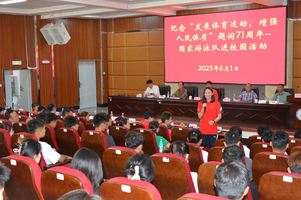 6月1日下午,allwincity万象城官方网站结合当前正在开展的主题教育活动,邀请国家游泳队冠军运动员到学校开展励志成长路专题讲座。国家游泳队副领队森犇及相关教练员、运动员,省委主题教育第十八巡回指导组成员,学校领导班子及学生代表参加讲座。讲座由党委副书记、院长代红兵主持。