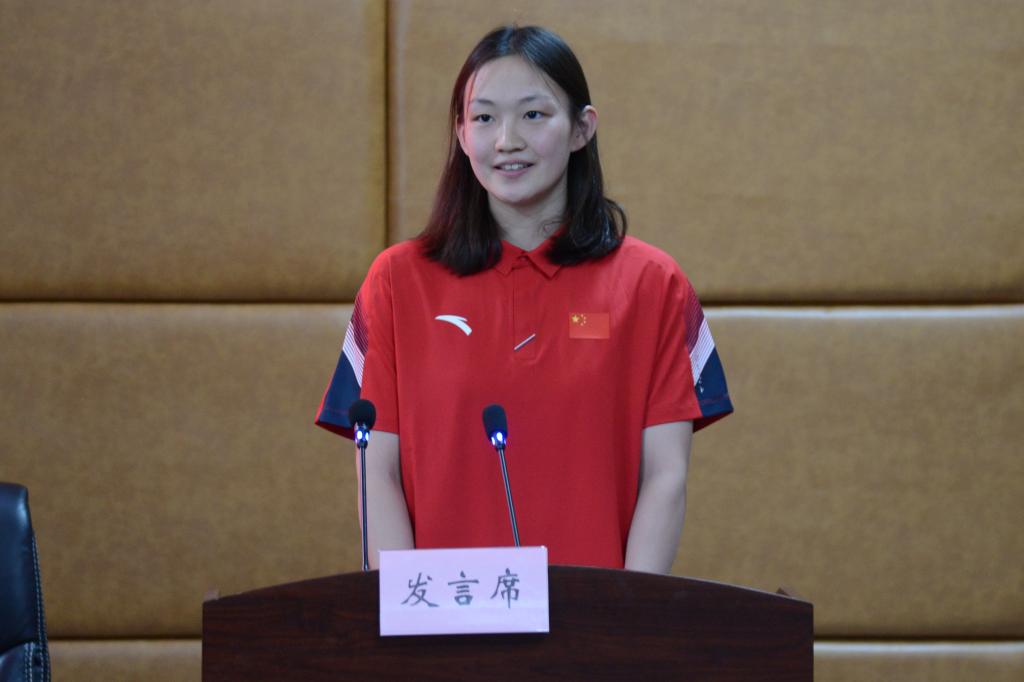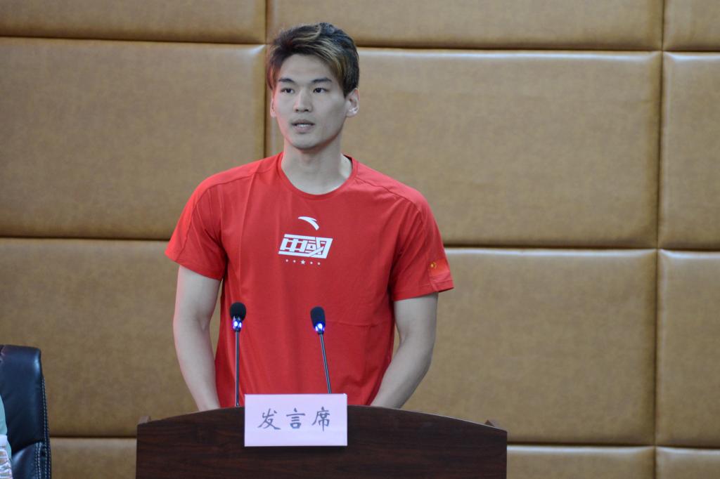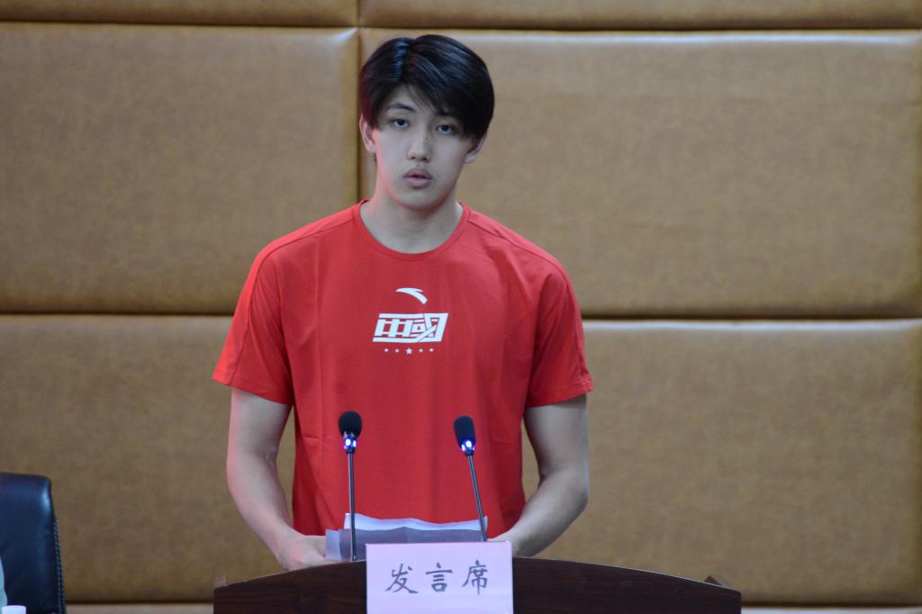 2003年出生的费立纬是此次分享中年龄最小的队员,在今年5月结束的2023全国游泳冠军赛中,他以14分46刷新个人最好成绩,获得男子1500米自由泳冠军。费立纬在分享中讲述了自己训练、比赛的感受,他说:“在每一次训练、比赛中,我都严格要求自己。我深知自己作为一名国家游泳队运动员的使命感、责任感,牢记我们队伍的座右铭:自信自律,勇敢坚持,为国征战,实现梦想!”