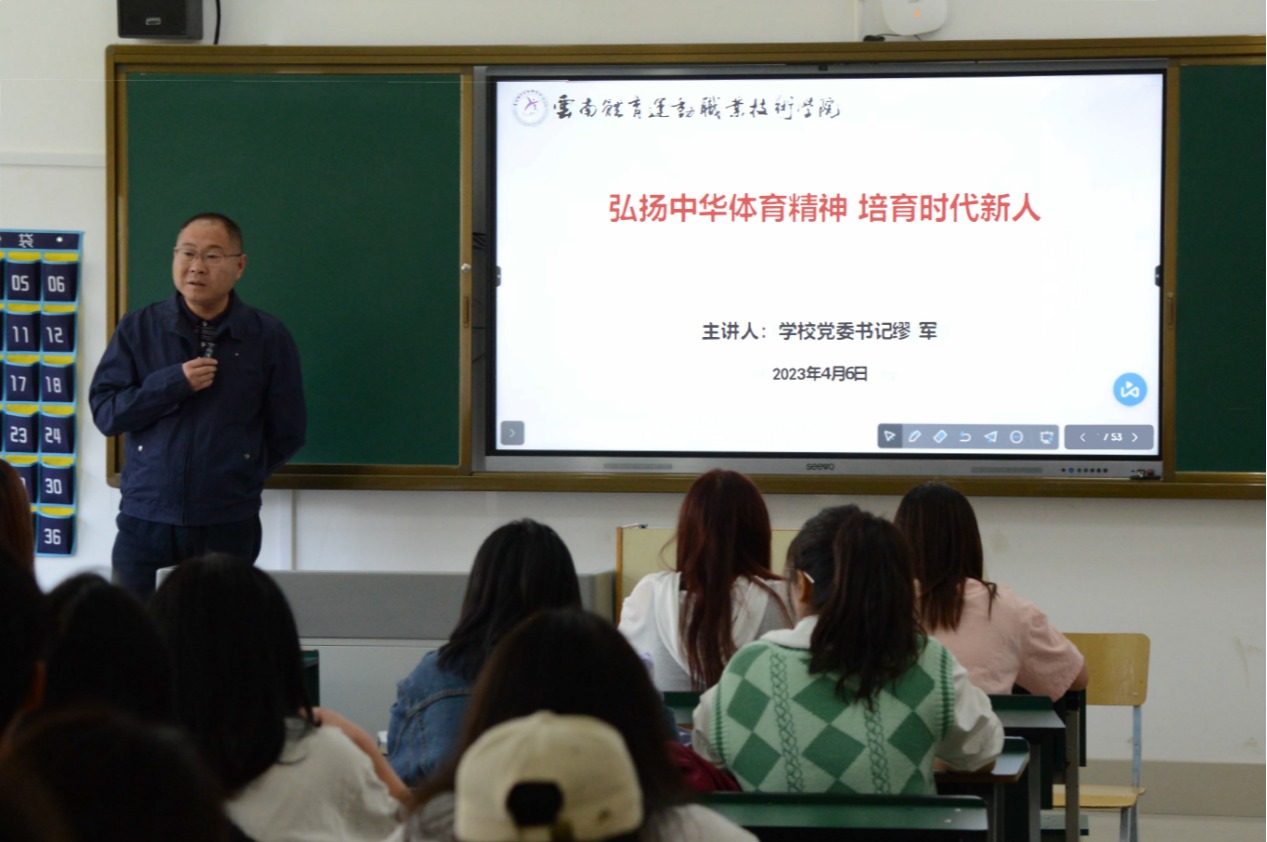 学校深入研究体育类院校思政课程特点,将体育精神和元素融入思政课教学,校领导讲解“学习习近平总书记关于体育的重要论述”和“弘扬中华体育精神 培养时代新人”等授课专题,以新颖独特的视角、深刻的理论阐述,结合生动鲜活的事例,引起学生们强烈共鸣。在授课中校领导寄语青年同学,身为体育人,我们要牢记习近平总书记的嘱托,为心中的“体育梦”勤学苦练,用扎实的专业知识和技能为建设体育强国、健康中国奉献力量,争做有理想、敢担当、能吃苦、肯奋斗的时代新人,让自己的青春在祖国和人民需要的地方绽放绚丽之花。