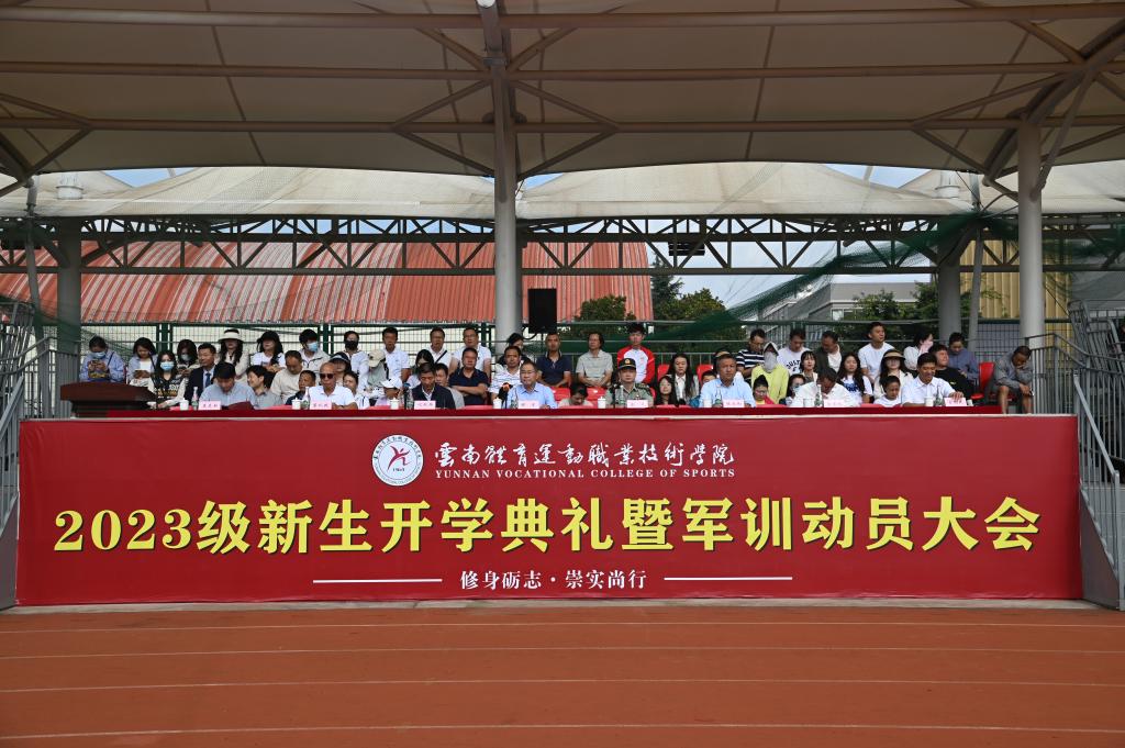 9月6日上午,allwincity万象城官方网站2023级新生开学典礼暨军训动员大会在学校田径场举行,昆明市西山区人民武装部部长涂凡应邀参加大会并讲话,校领导缪军、代红兵、张永和、董从民、金吉斌、聂真新、董利民和学校全体教职工、2023级全体新同学参加大会。