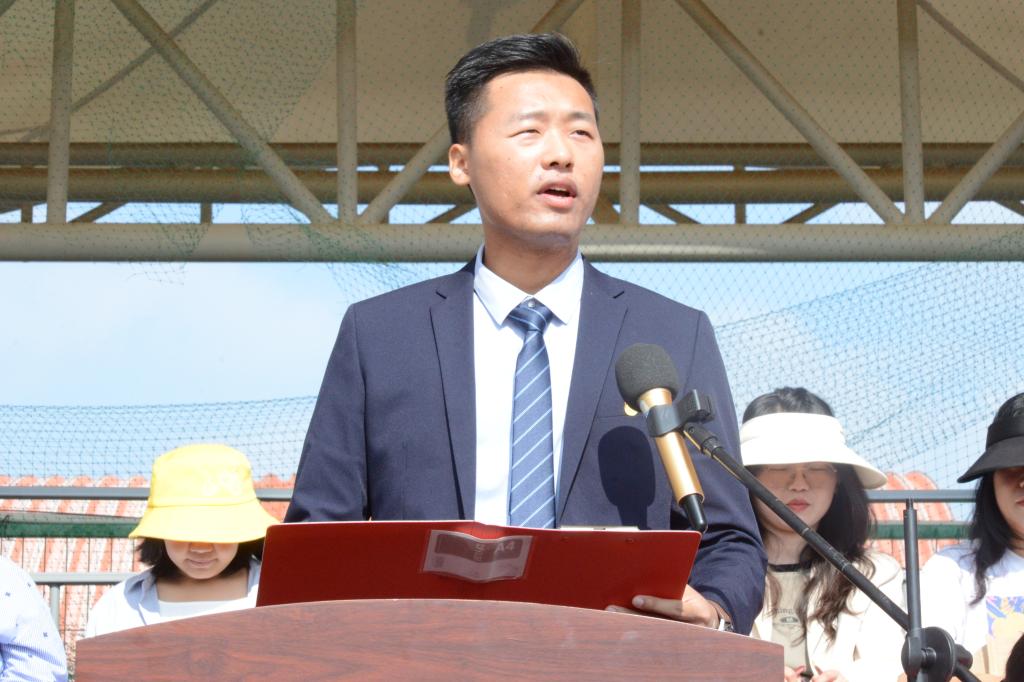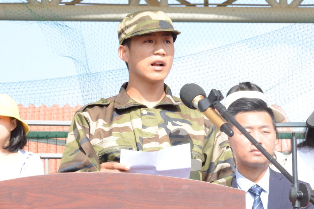 在庄严的国歌声中,军训动员大会拉开了序幕。参训学生代表和辅导员代表分别在动员大会上作了发言。