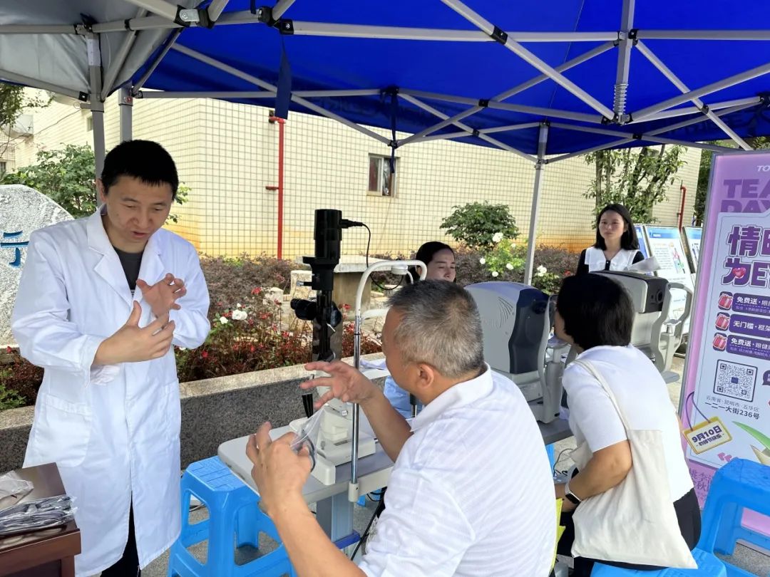 活动期间,大全眼科医院在校内广场设置了固定验光点,为每位到场的离退休老同志进行包括视力、角膜、视网膜等详细的眼部检查,医生还向大家普及了眼部健康知识,提供了日常保健的建议,对于有更换眼镜需求的离退休老同志,大全眼科医院还提供了老花眼镜免费“以旧换新”服务。