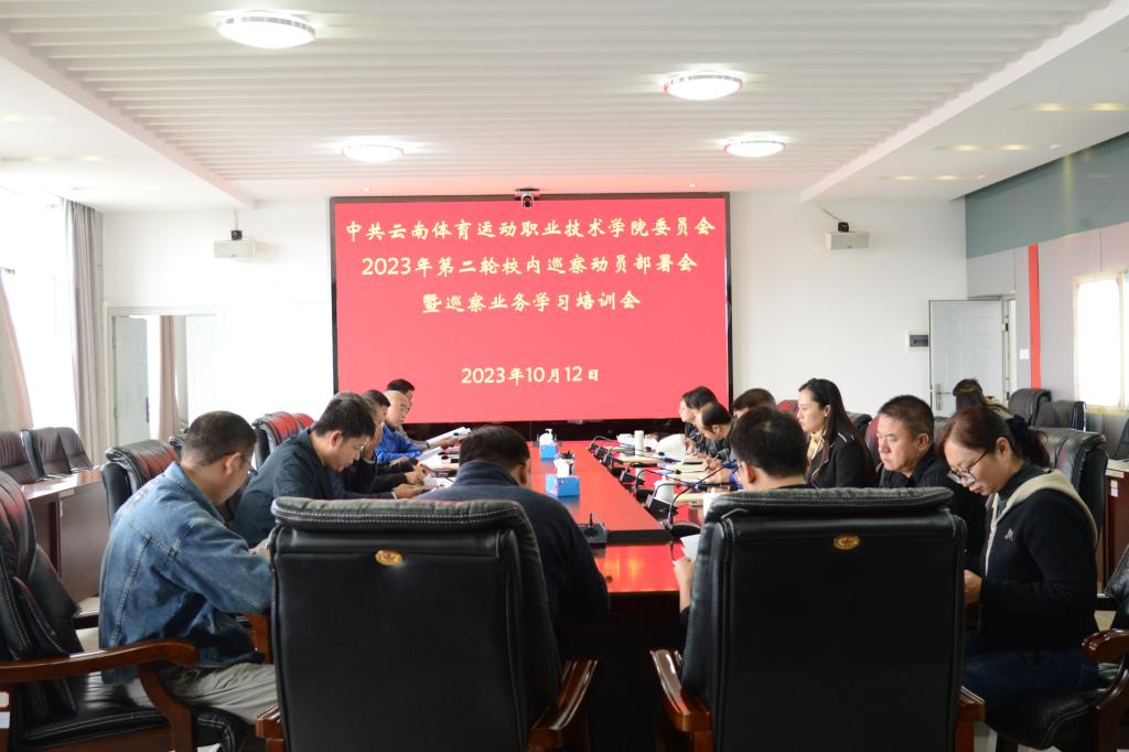 2023年10月12日上午,根据党委工作安排,学校第二轮校内巡察动员部署会暨巡察业务学习培训会在云帆楼第一会议室召开。学校党委领导班子全体成员、巡察工作领导小组成员、办公室(党委巡察办)成员、巡察组成员参加会议。会议由党委委员、副院长聂真新主持。