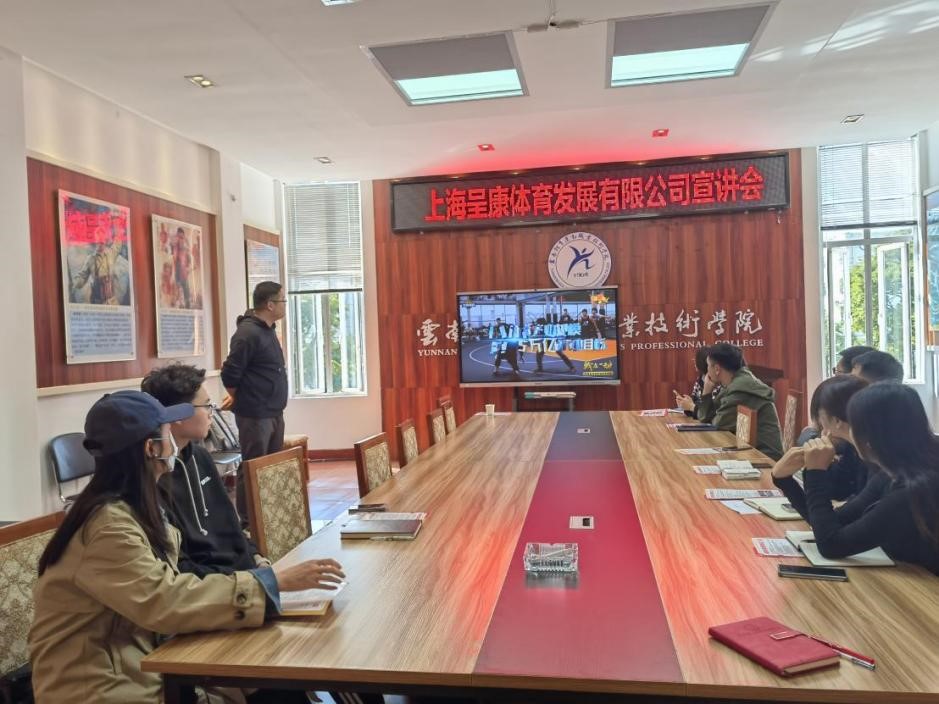 2023年10月16日,上海呈康体育发展有限公司派校企合作部经理倪文越在综合楼二楼会议室面向招生就业处、体育教育学院和运动训练与教练员学院的相关业务负责同志,就企业文化,实习期学生的管理和培训等方面展开宣讲。10月17日,在招就处部署,二级学院配合下,上海呈康体育发展有限公司向大二年级宣传企业文化,介绍公司政策。10月18日,在第一报告厅,针对学习篮球专项的学生,该公司介绍了企业的规模、发展理念、发展历程、管理与培训模式,以及订单班的开展形式。10月20日,在第一报告厅,公司针对100余名有意向的学生介绍了企业对实习生的要求,以及实习的相关事宜。