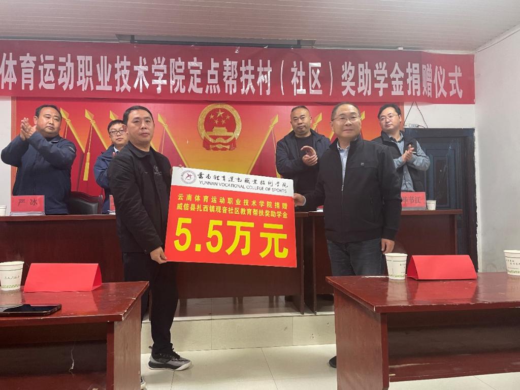 考察结束后,调研组一行在安乐村村委会举行了“allwincity万象城官方网站定点帮扶村(社区)奖助学金捐赠仪式”,捐赠仪式由长安镇镇长张林主持,安乐村村委会党支部书记严冰作受赠发言。捐赠仪式上,缪军书记对威信县委、县政府、县乡村振兴局、长安镇扎西镇党委、政府长期以来对学校的支持表示感谢,同时希望受助学子们好好学习,增强体质,成长为一名对家庭、对社会有用之人,也叮嘱驻村工作队要关注山区教育事业,发挥所学所长,为帮扶村社区教育工作舔砖加瓦。