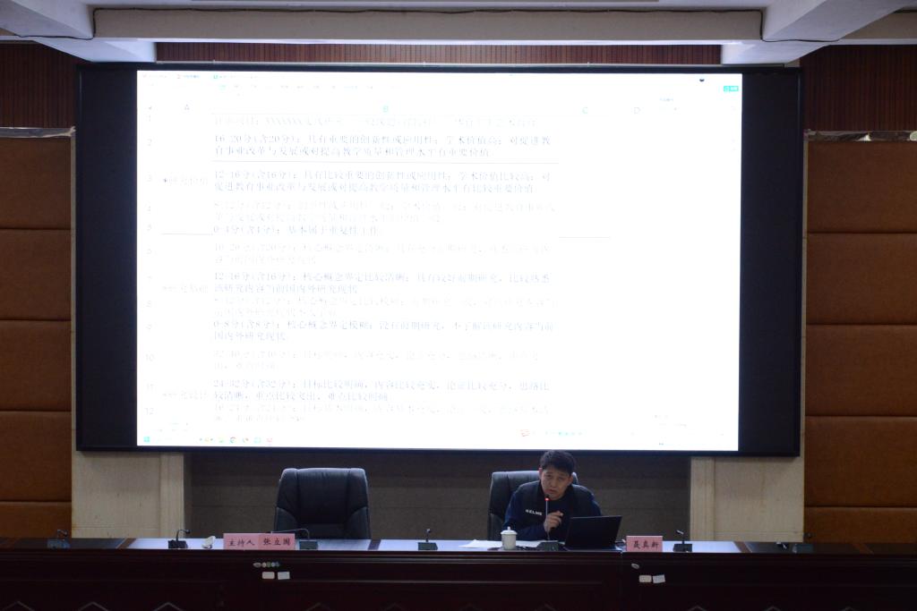 聂真新围绕国家社科基金项目选题、申报书撰写、组建研究团队等方面进行了指导,分享了高级别社科类基金项目的评审经验与体会。他指出,作为体育工作者要深刻把握民族复兴的时代主题,与云南省体育发展、学校建设发展同频共振,把个人发展写到学校建设的历史上,写在为学校奋斗的征程中。