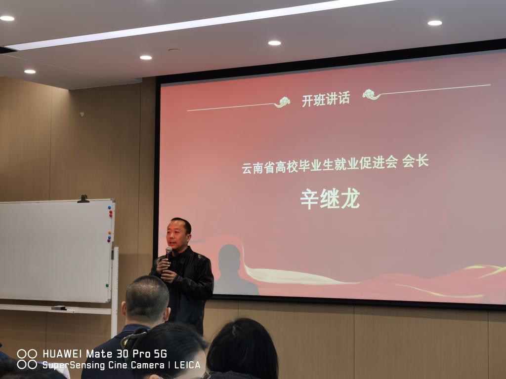 董利民为开班仪式致辞。他对云南省高校毕业生就业促进会提供学习平台和主讲教师辛勤付出表示感谢。他希望所有参训教师能够沉静下来认真学习,努力提高创新意识,增强创新创业能力,提升为学生创新创业服务的专业水平。