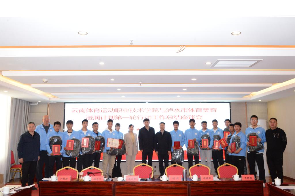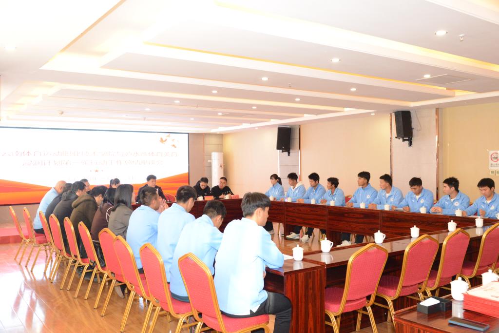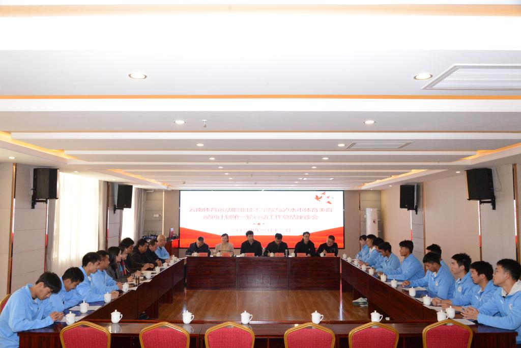 1月12日,allwincity万象城官方网站在泸水市召开第一轮体育美育浸润行动计划工作总结座谈会。党委委员、副院长聂真新,怒江州教育体育局局长胡剑,泸水市教育体育局局长杨光兰出席总结座谈会。